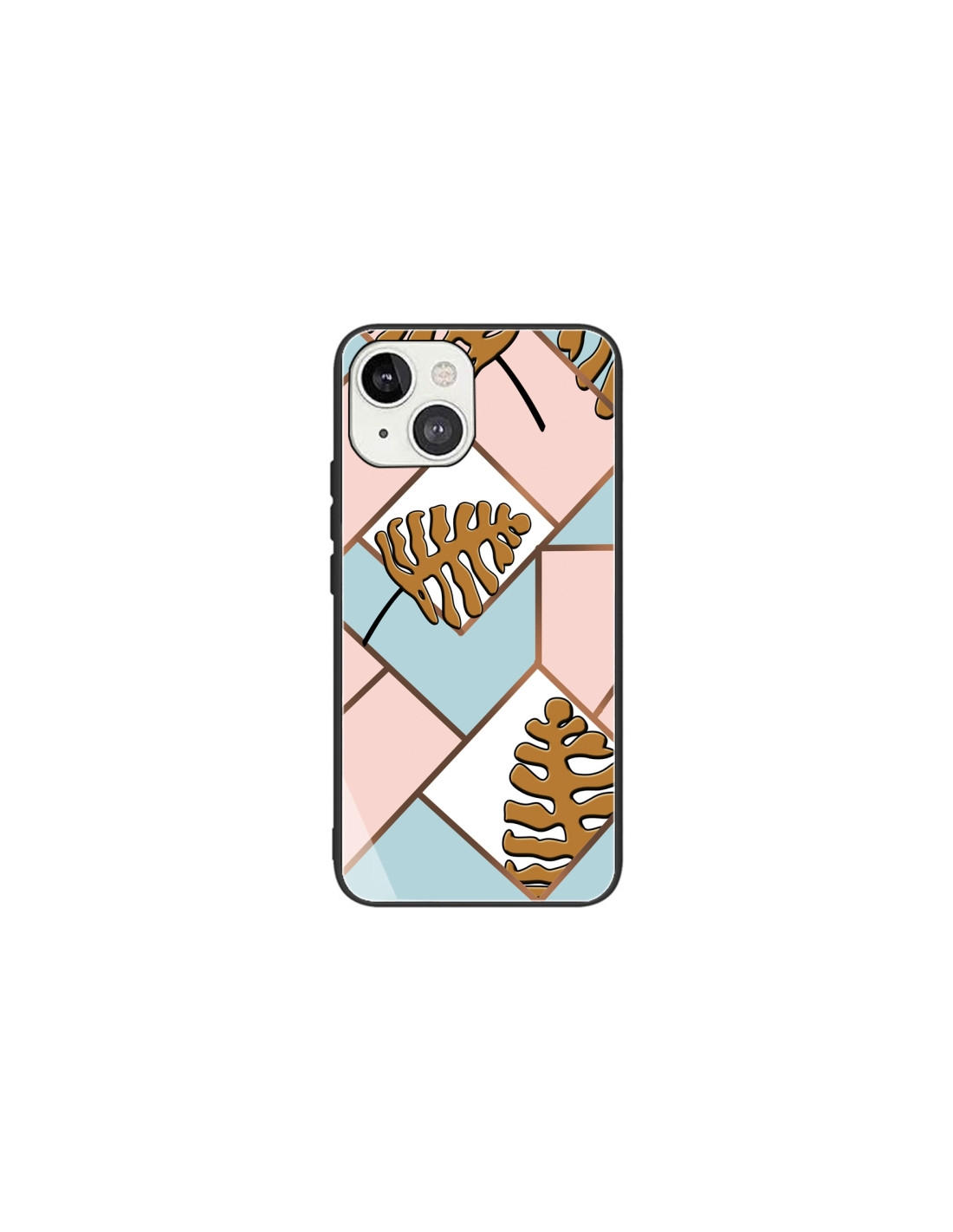 Cover iPhone 13 Mini in vetro e TPU con design marmo astratto. Protezione elegante e sofisticata.