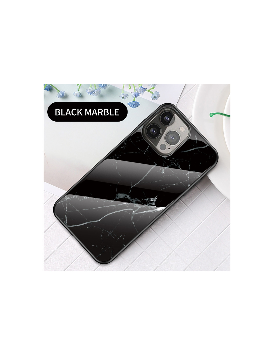 Cover iPhone 13 Pro Max in TPU con design marmo nero. Protezione elegante e duratura per il tuo dispositivo.