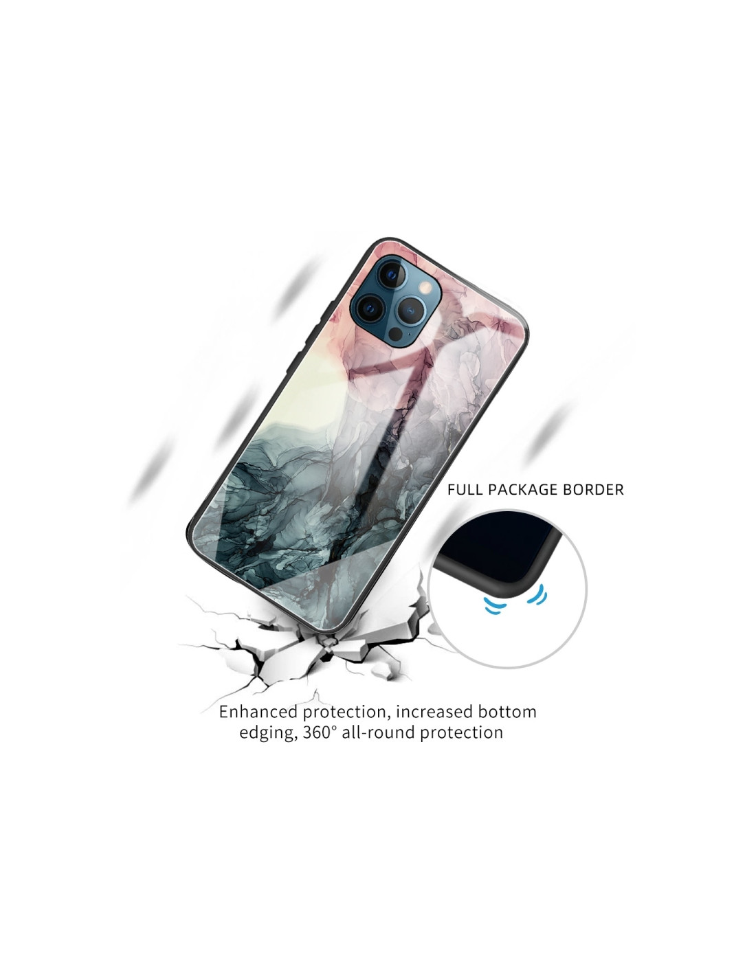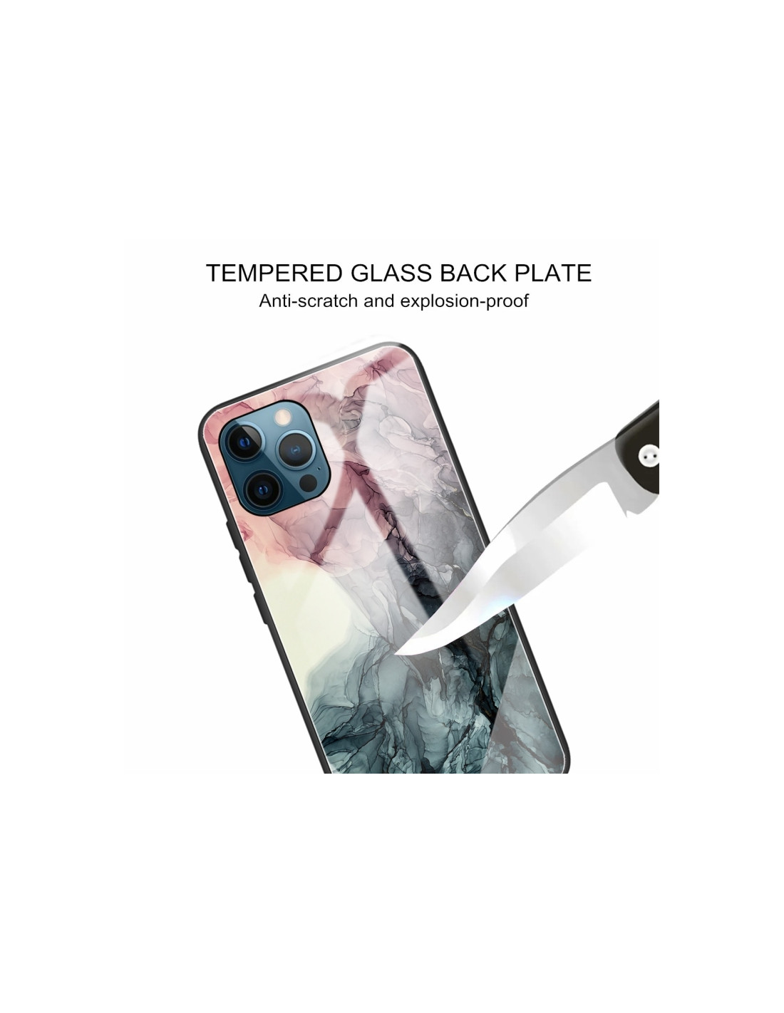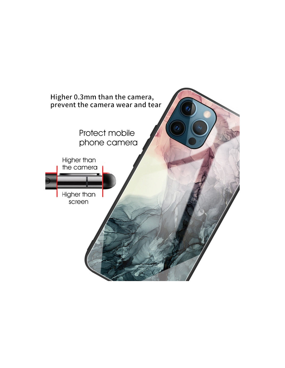 Cover in vetro protettivo per iPhone 13 Pro Max con elegante design marmo astratto blu. Protezione e stile.