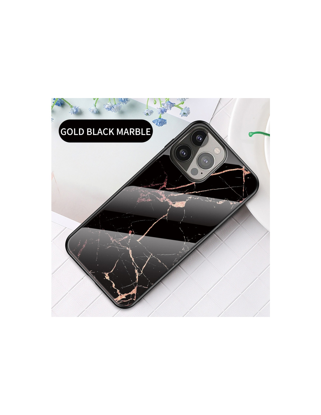 Cover iPhone 13 Pro Max TPU Marmo Nero Golden Nero