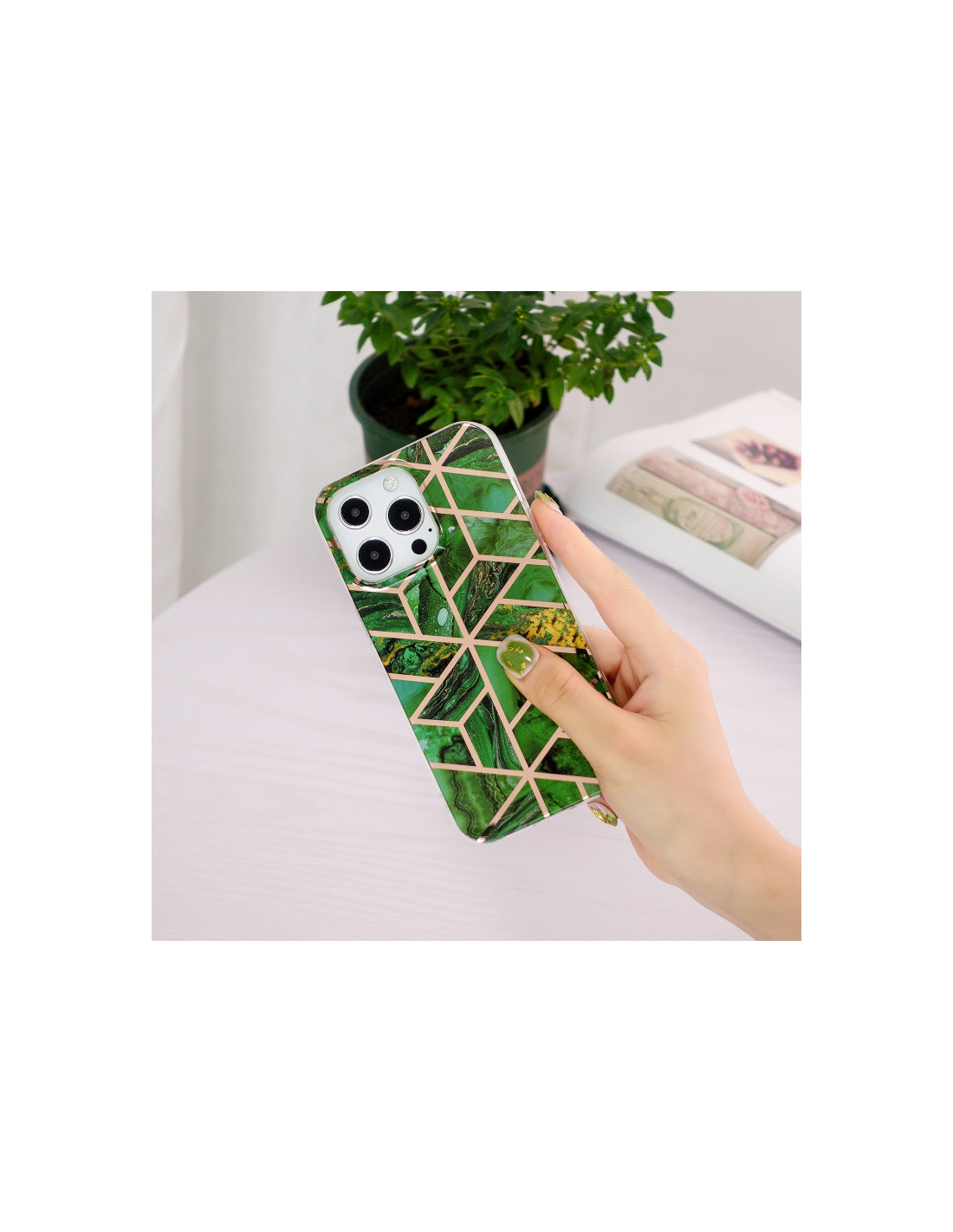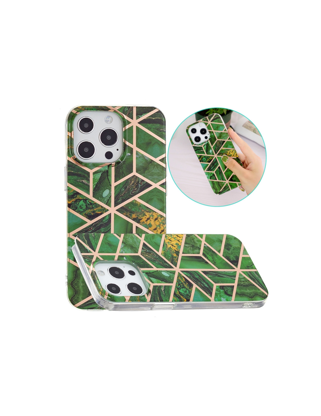 Proteggi il tuo iPhone 13 Pro con stile grazie a questa esclusiva cover in TPU con finitura electroplating. Il design con rombi verdi regala un'estetica moderna e sofisticata al tuo dispositivo. Caratteristiche principali: