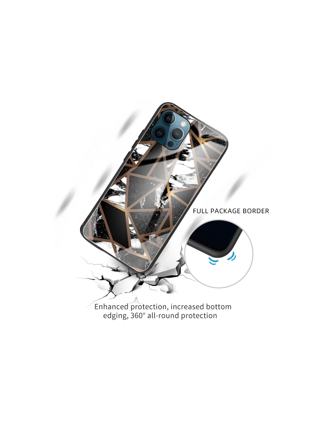 Cover in vetro protettivo con elegante design marmo astratto a rombi neri per iPhone 13 Pro.