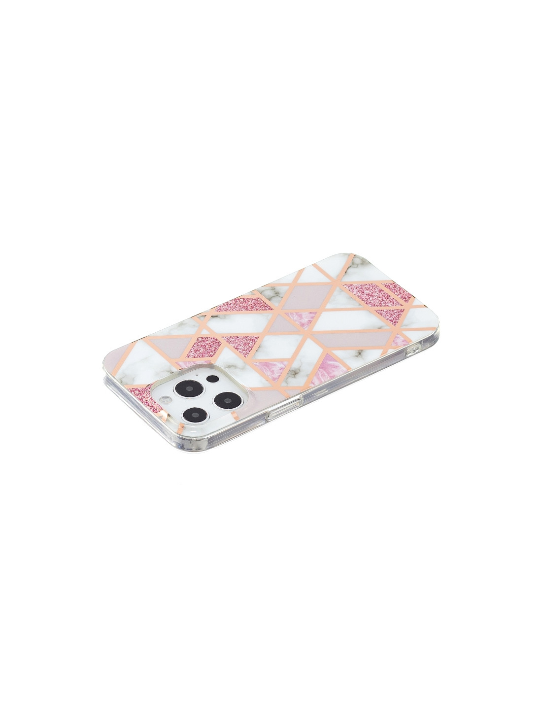 Cover iPhone 13 Pro in TPU con design rombo rosa e bianco. Protezione elegante e resistente per il tuo smartphone.