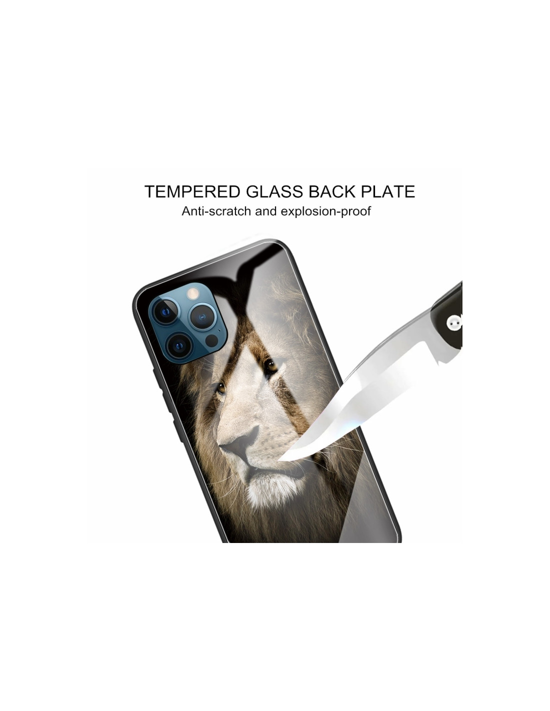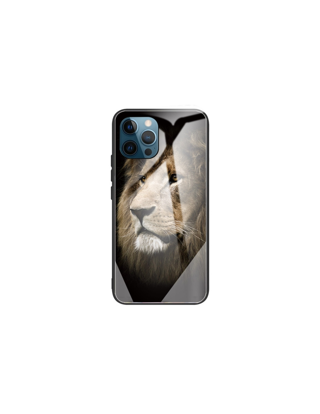 Cover iPhone 13 Pro con vetro temperato e bordo TPU. Design Leone con protezione antiurto.