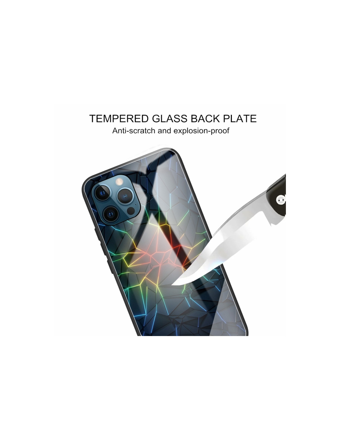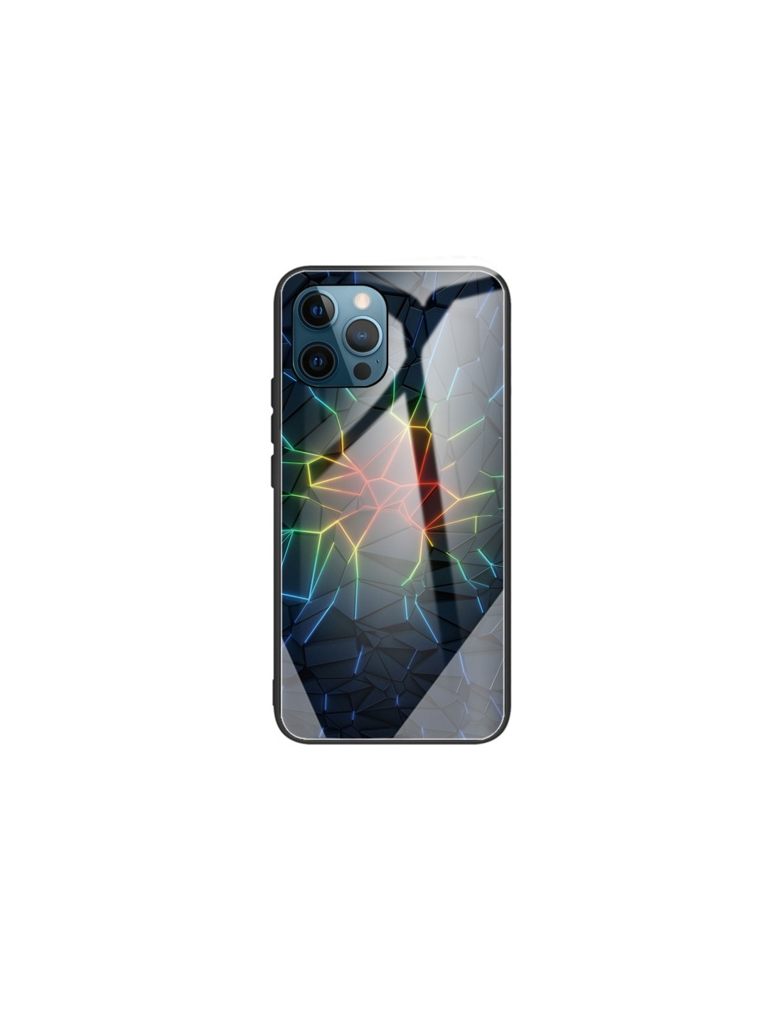 Cover iPhone 13 Pro con vetro temperato e bordo TPU. Protezione antiurto con design screpolato.