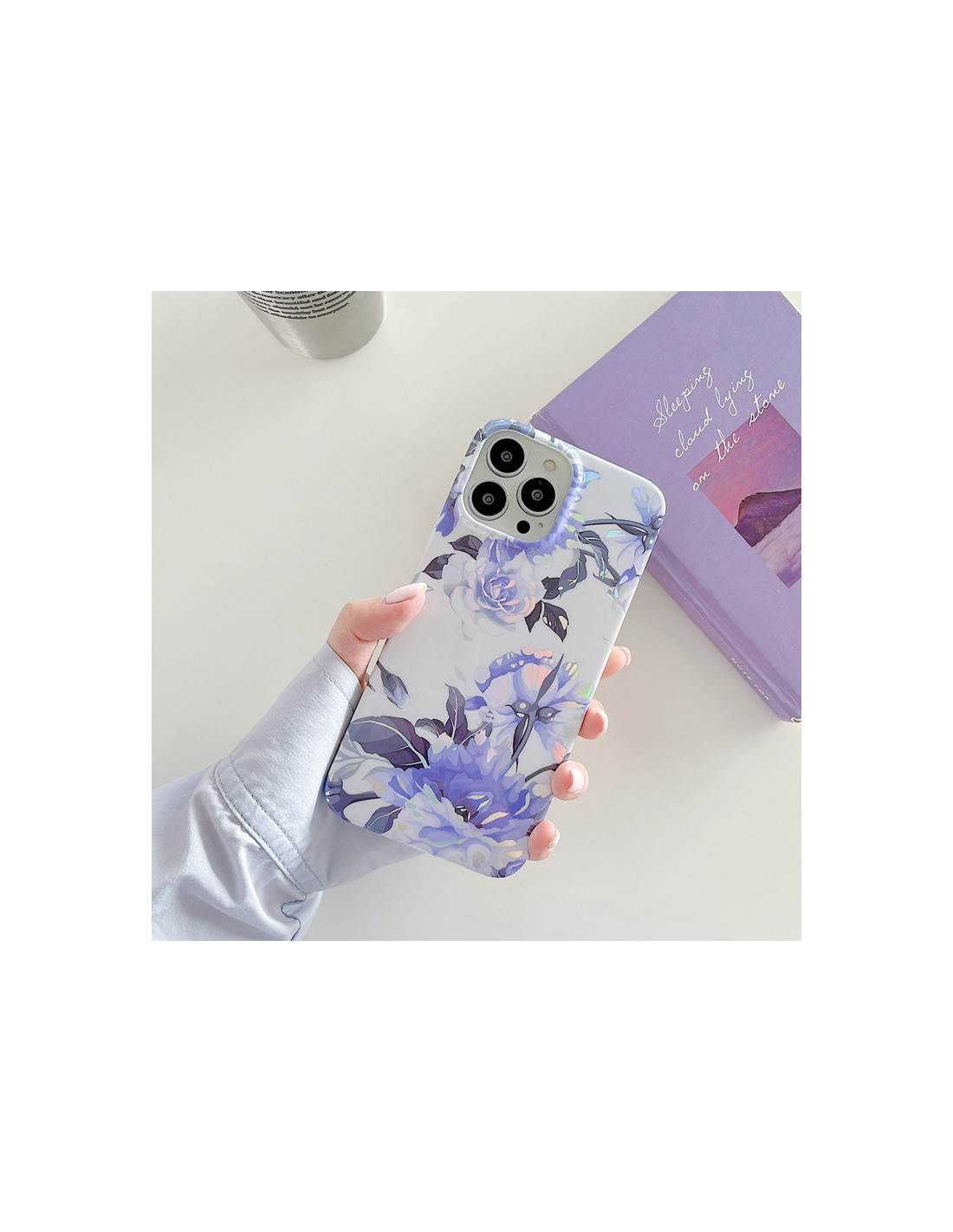 Cover iPhone 13 Pro Max Marmo Nero TPU Blu flowers | Melacompro
