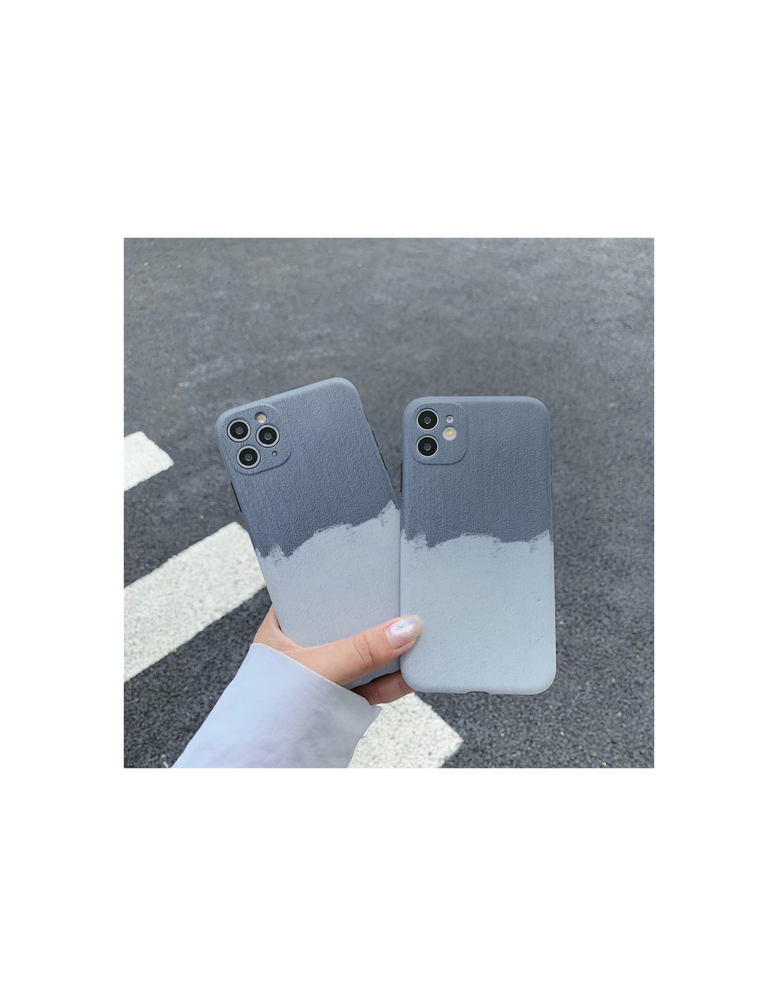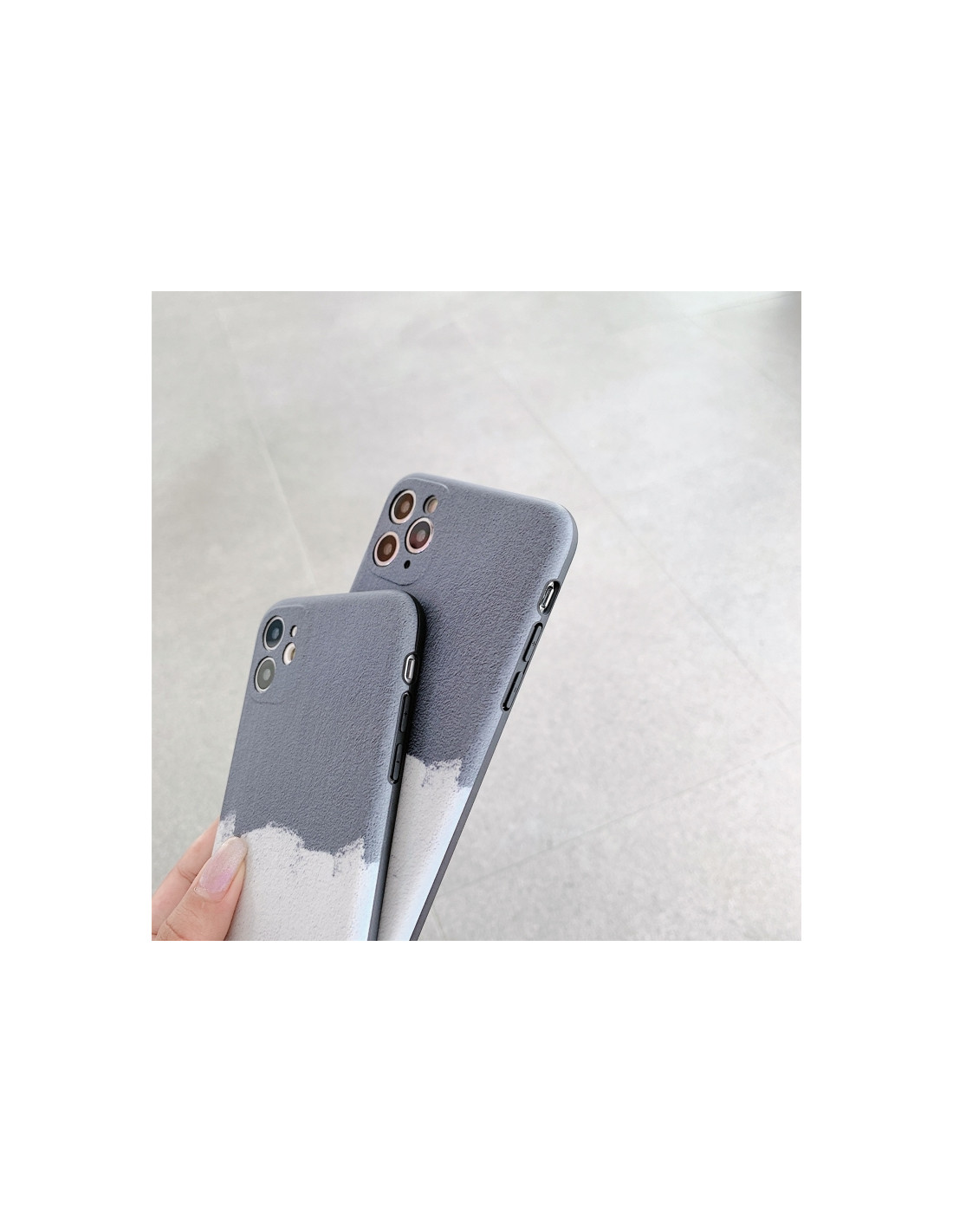 Cover iPhone 13 in TPU con design paesaggio naturale grigio e bianco. Protezione affidabile e stile elegante.