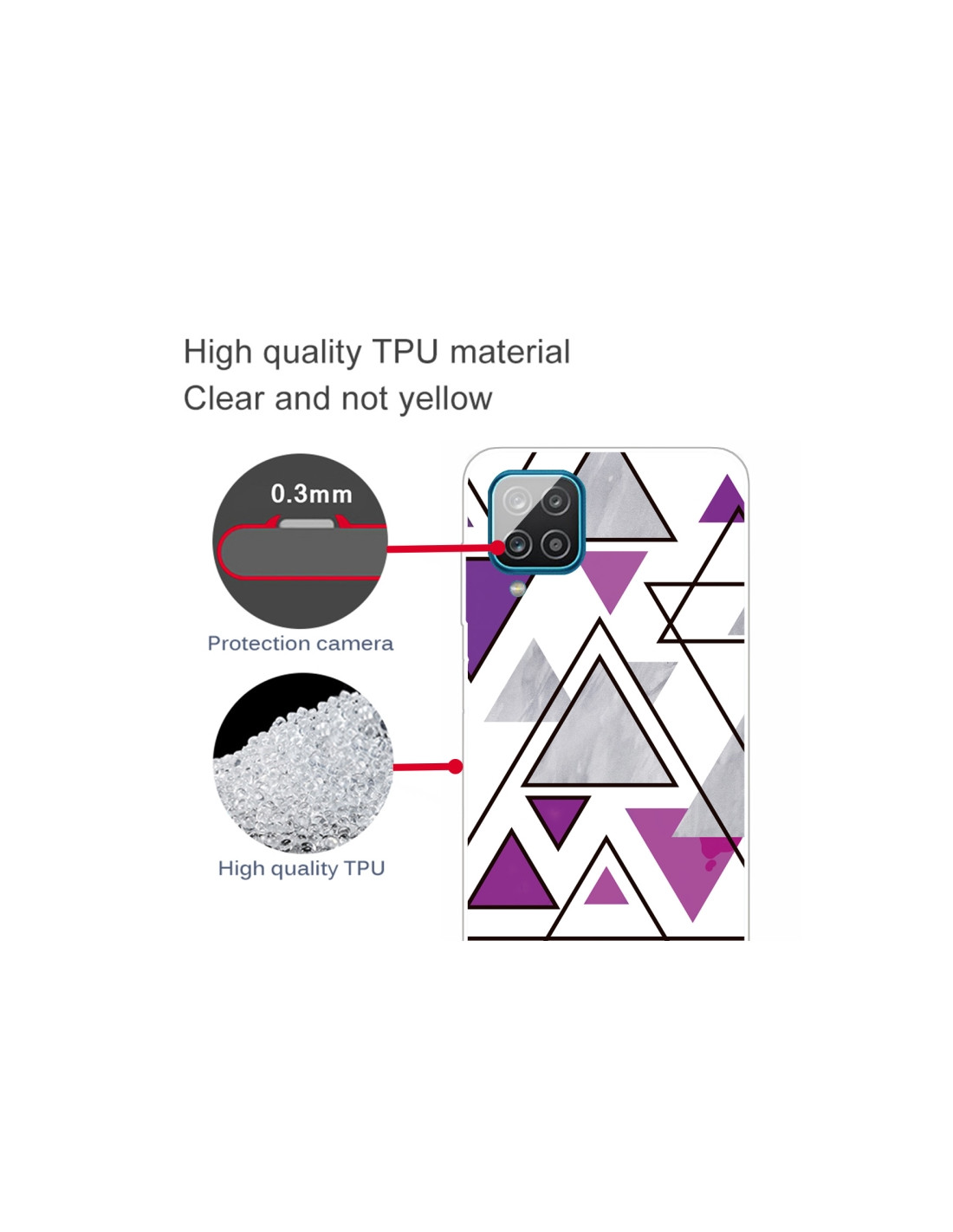 Cover protettiva in TPU per Galaxy A12 con elegante design marmo triangolare. Protezione affidabile e stile moderno.