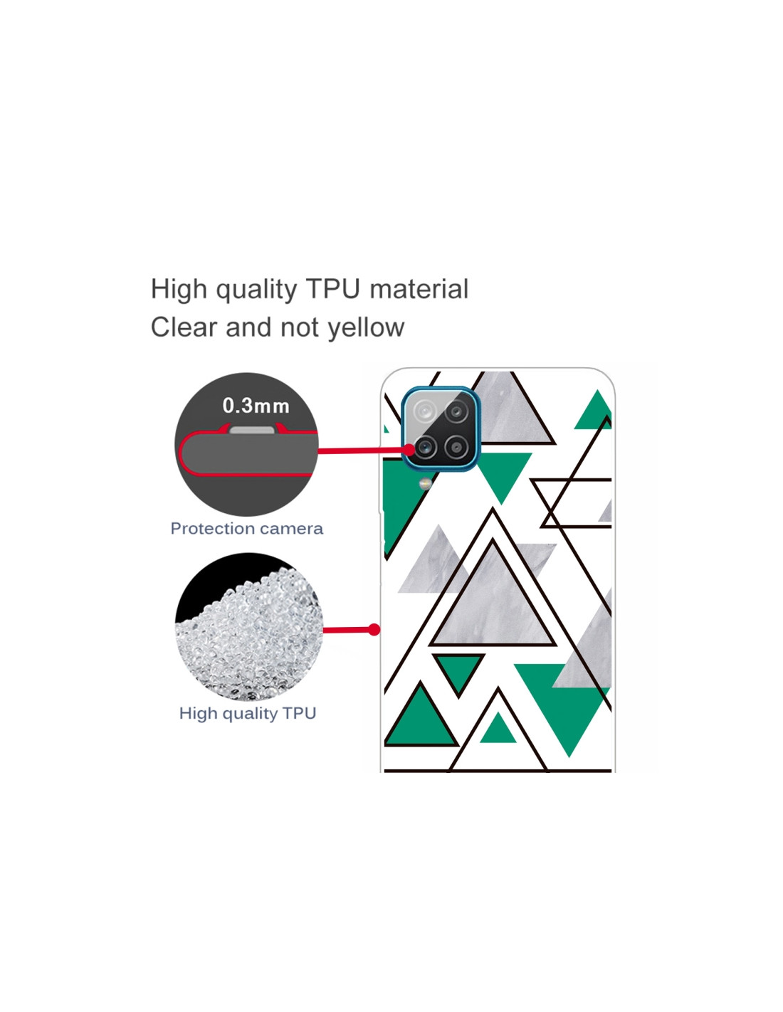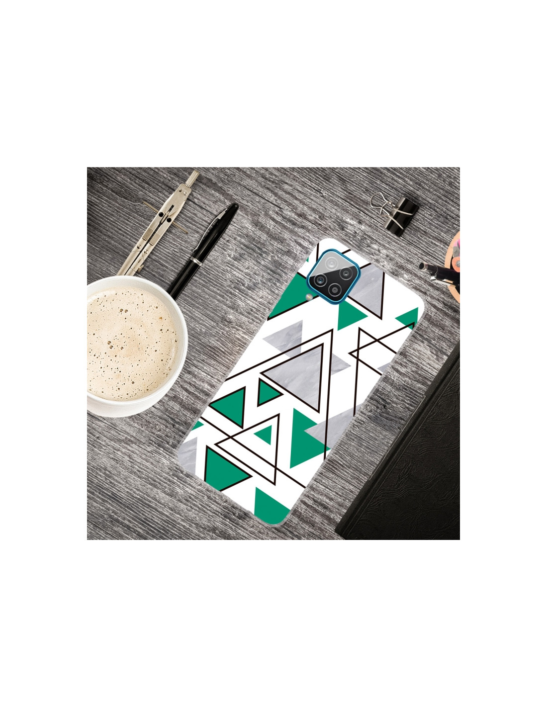 Cover Galaxy A12 in TPU con elegante fantasia marmo triangolare. Protezione affidabile e design moderno.