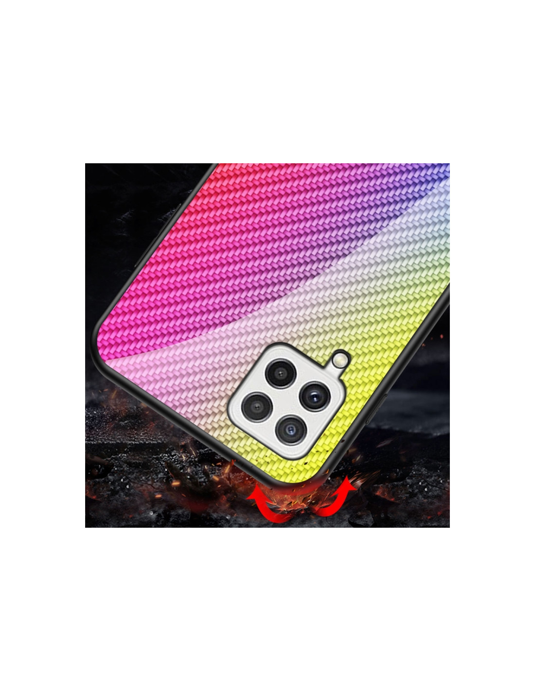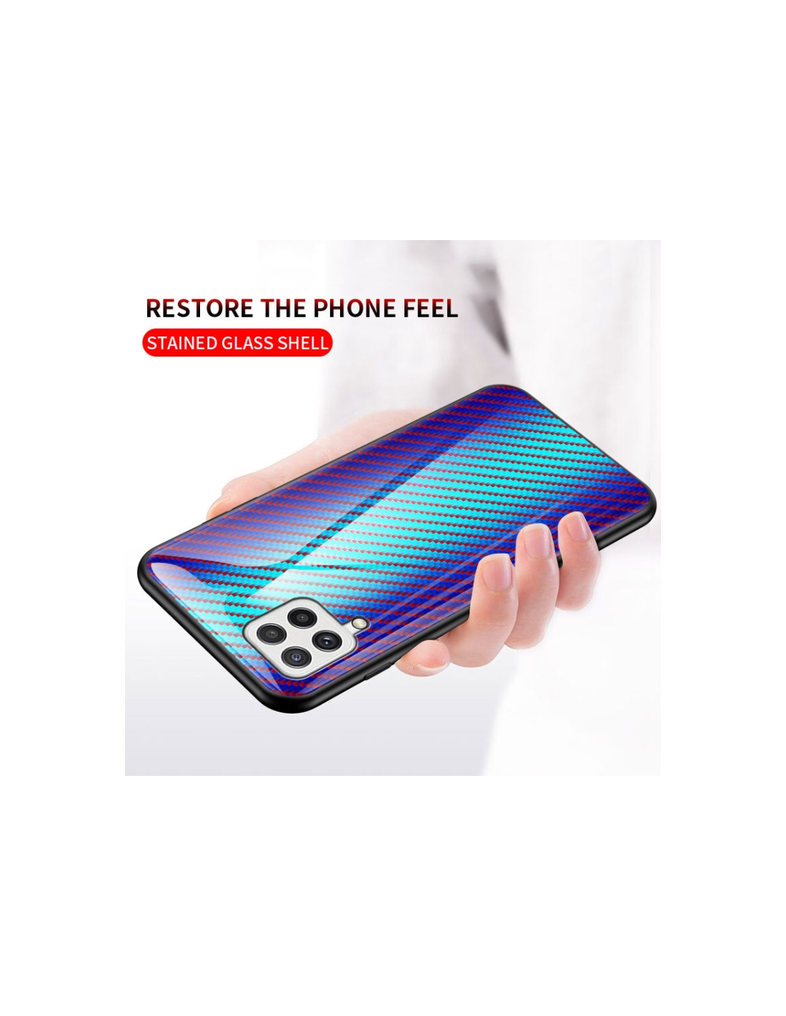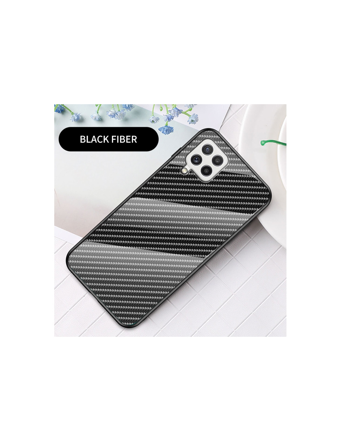 La cover Galaxy A22 4G combina eleganza e protezione con il design esclusivo a fibra di carbonio nero. Realizzata in TPU resistente sui bordi e vetro temperato sul retro, offre una protezione completa del tuo smartphone mantenendo un profilo sottile e raffinato. Il gradiente della texture fibra di carbonio conferisce un aspetto premium e moderno al tuo dispositivo. Caratteristiche principali: