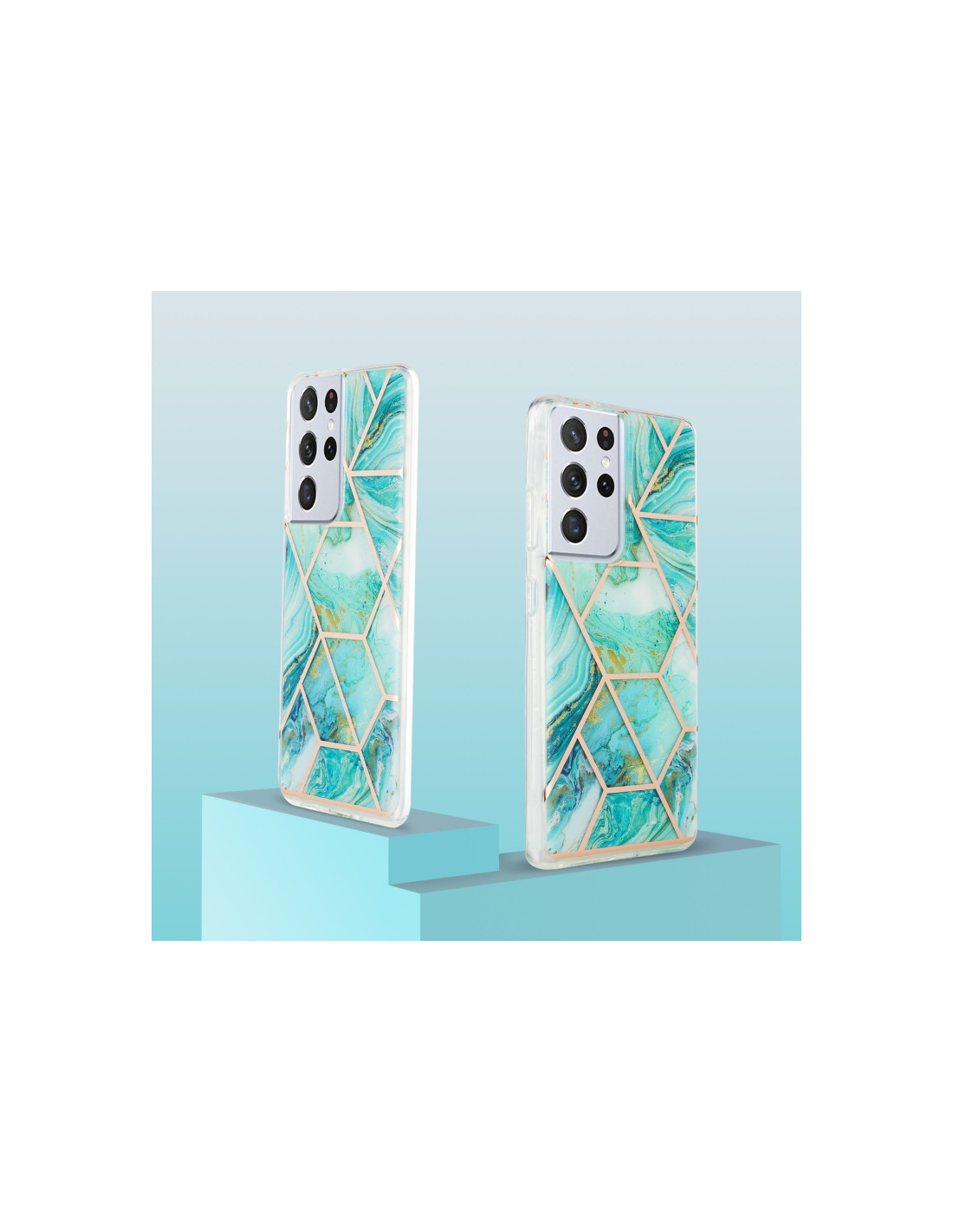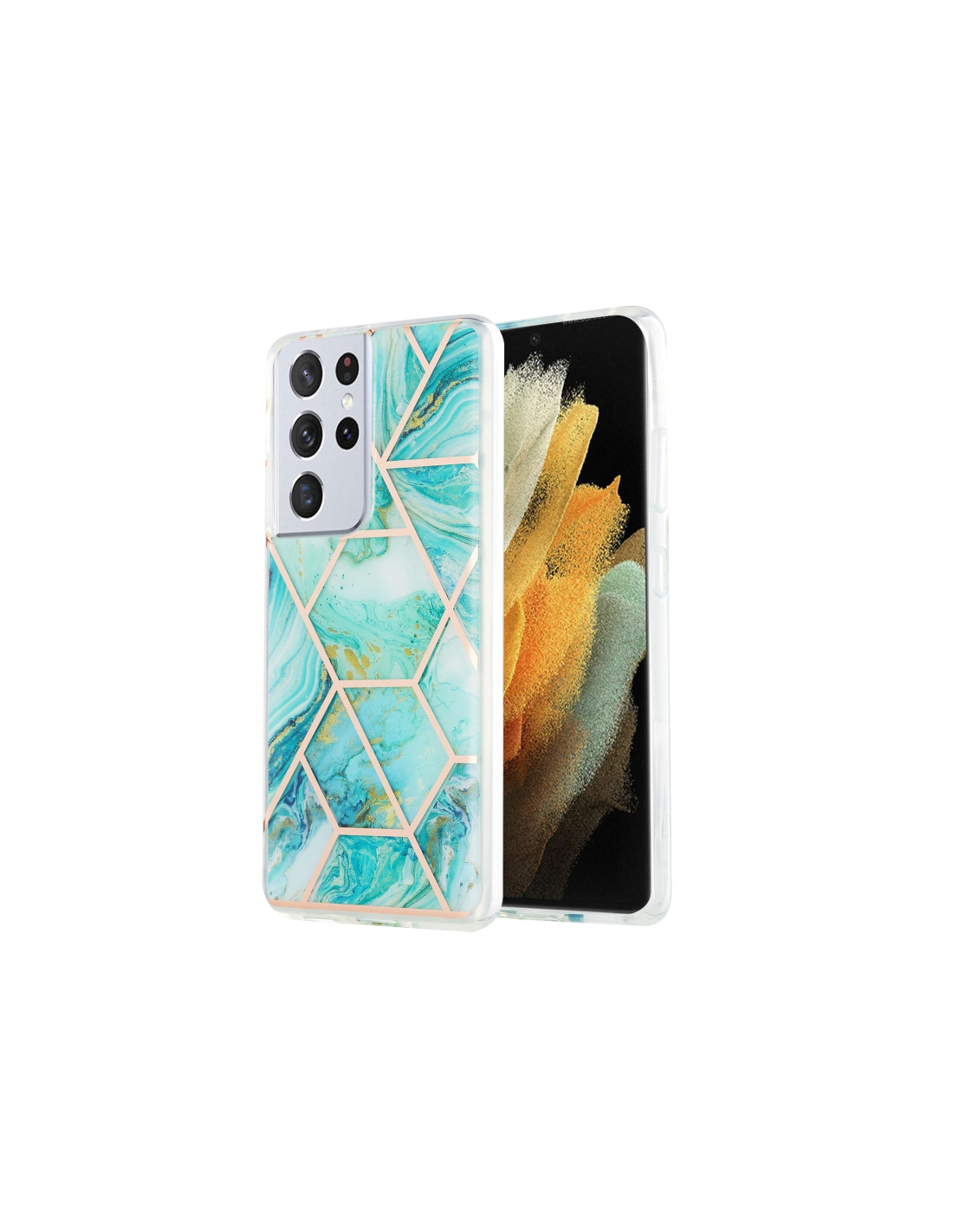 Cover Galaxy S21 Ultra in TPU con design marmo e finiture electroplating 3D. Protezione elegante e duratura.