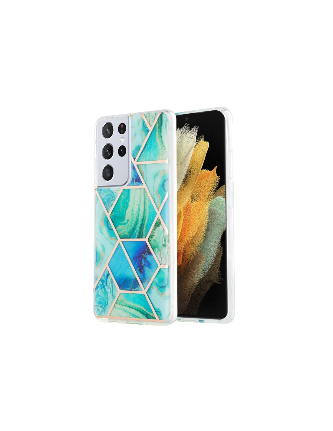 Cover Galaxy S21 Ultra in TPU con design marmo e finiture electroplating 3D. Protezione elegante e duratura.
