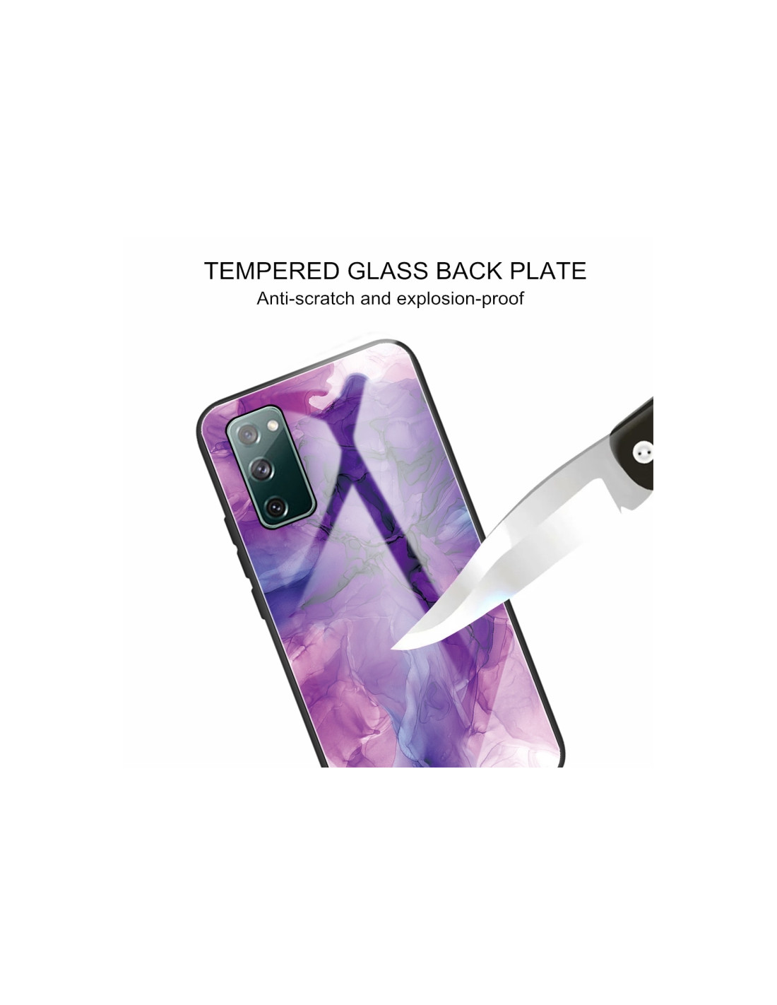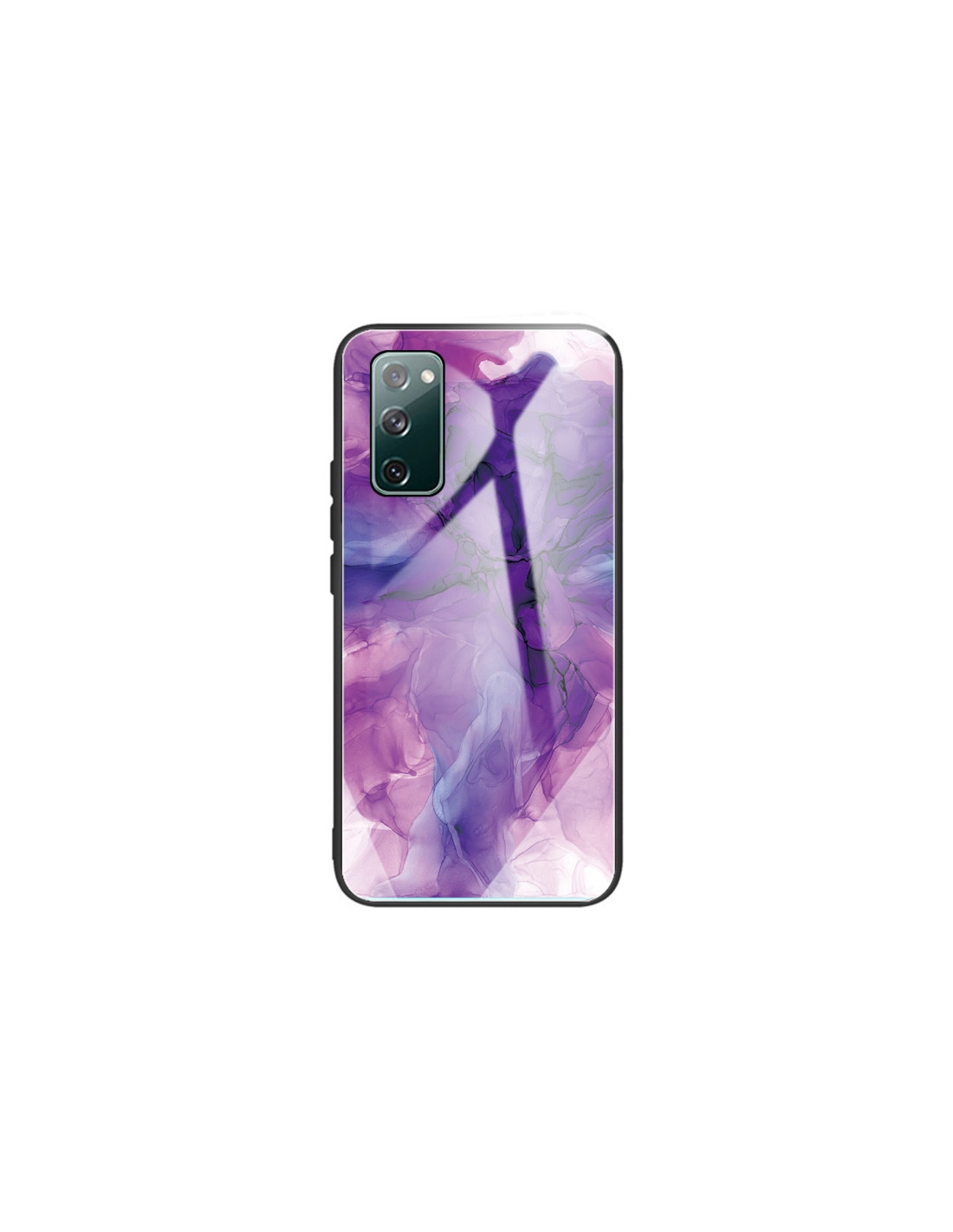 Cover protettiva in vetro per Galaxy S20 FE con design marmo astratto viola. Protezione elegante e duratura.