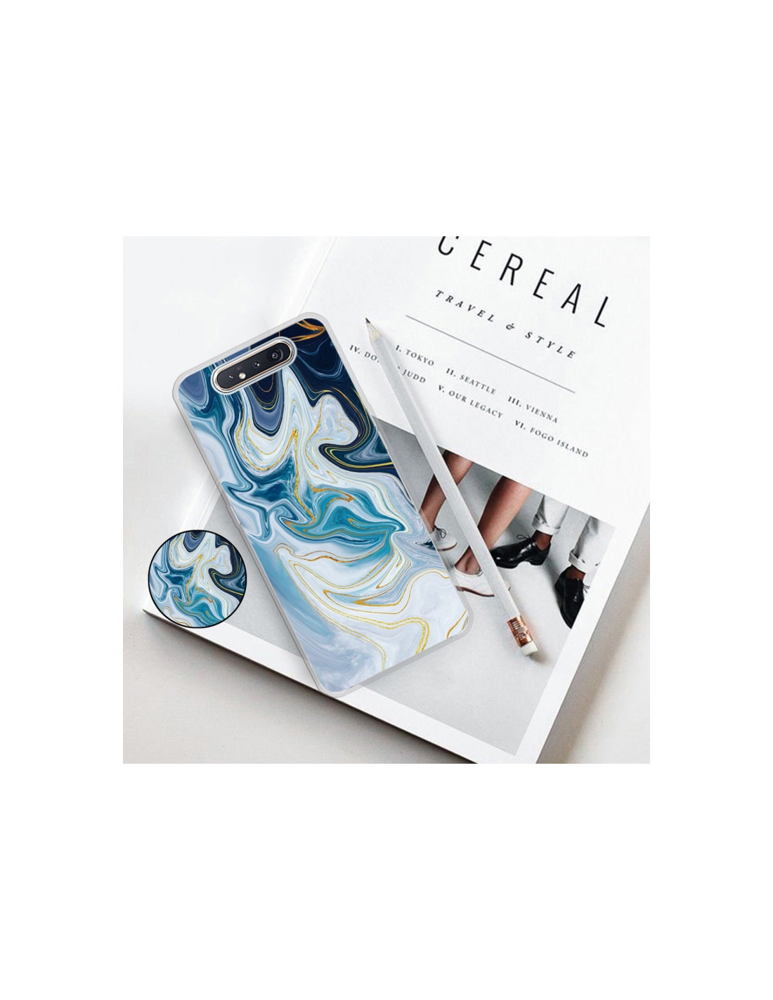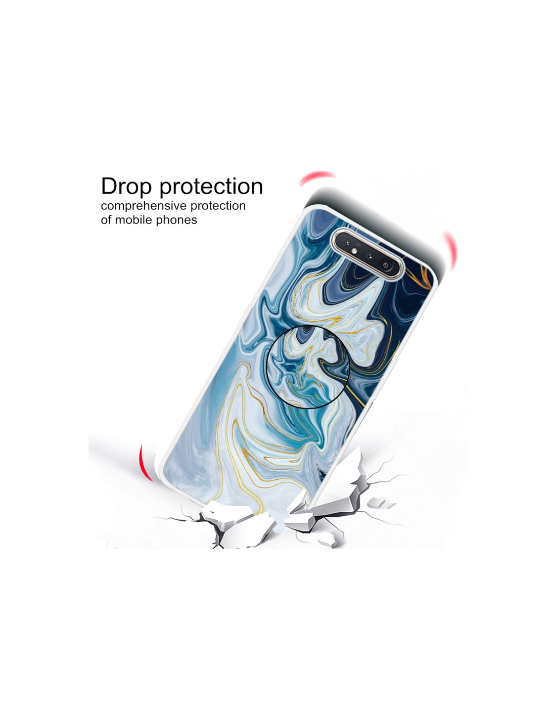 SamsungLa cover Galaxy A80 combina protezione e stile con un design marmorizzato elegante. Realizzata in TPU di qualità premium, offre una protezione completa contro urti e graffi mantenendo uno spessore contenuto.