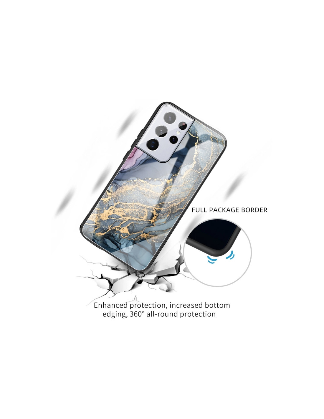 • Design esclusivo con pattern marmo astratto e finiture color oro