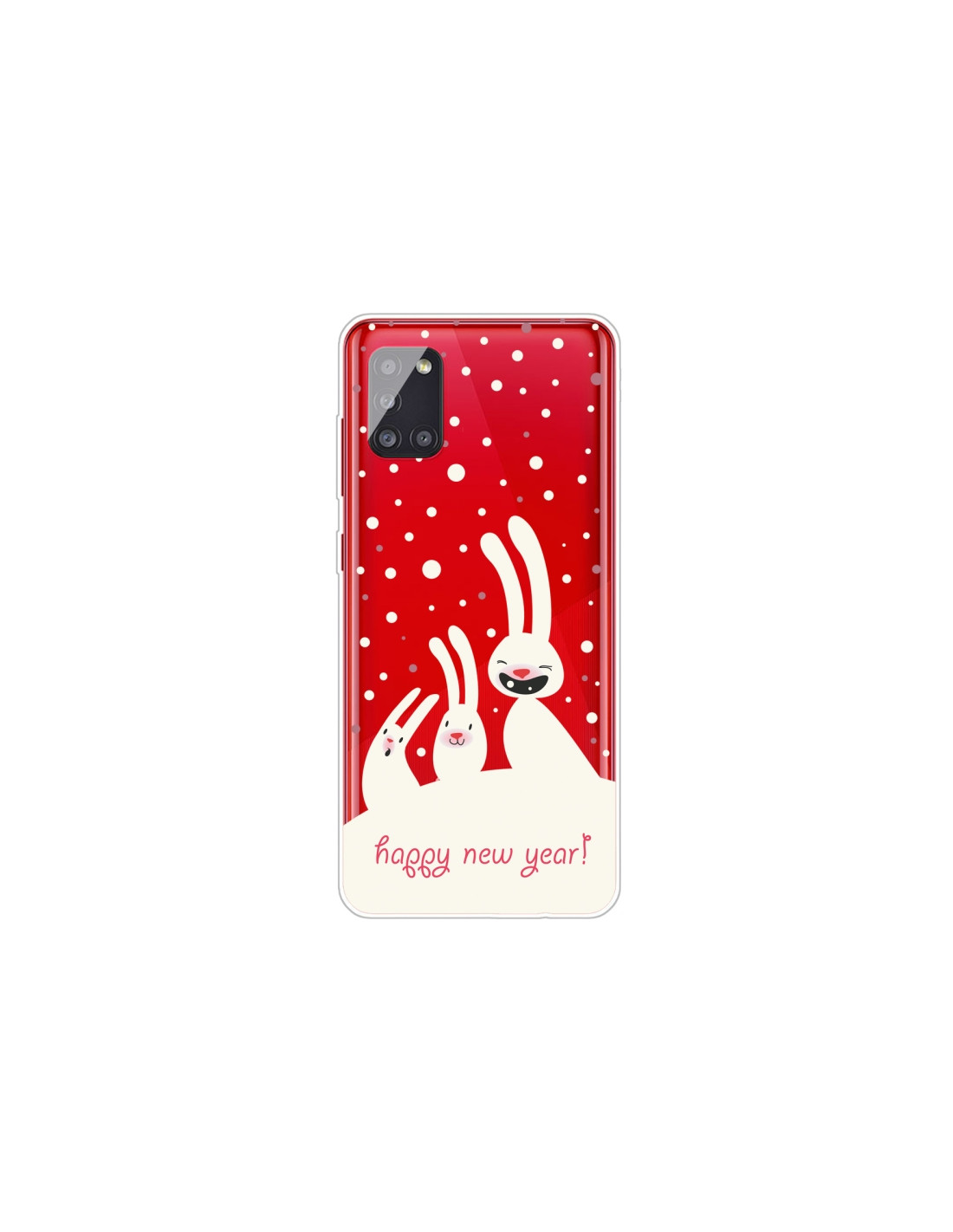 Cover Galaxy A51 5G in TPU trasparente con design Three Bianco Rabbits. Protegge il tuo smartphone mantenendo visibile il design originale.