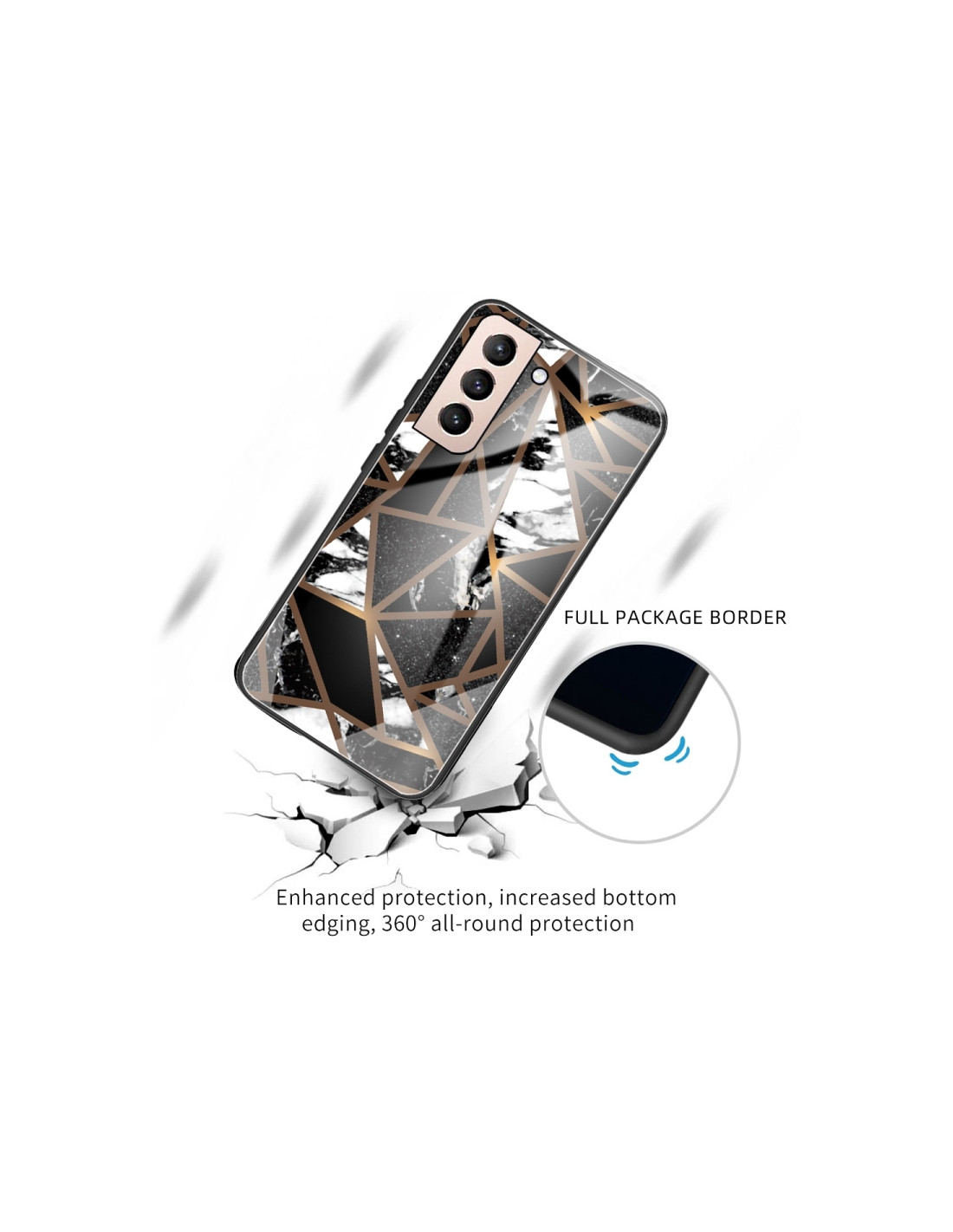 La cover Galaxy S21+ 5G in vetro protettivo combina stile e funzionalità con un affascinante design marmo astratto nero. Realizzata con materiale in vetro temperato, offre una protezione robusta mantenendo un aspetto elegante e moderno.