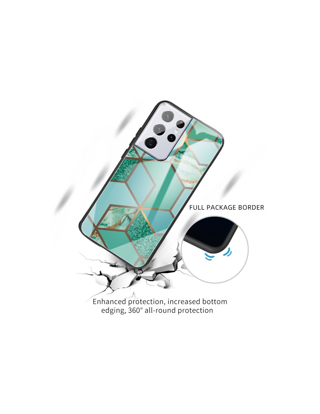 Proteggi il tuo Samsung Galaxy A52 5G con questa esclusiva cover in vetro che combina estetica e funzionalità. Il design marmo astratto in tonalità verde smeraldo crea un effetto visivo sofisticato e unico, trasformando il tuo smartphone in un accessorio di stile.