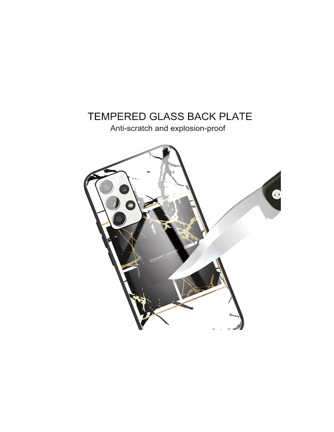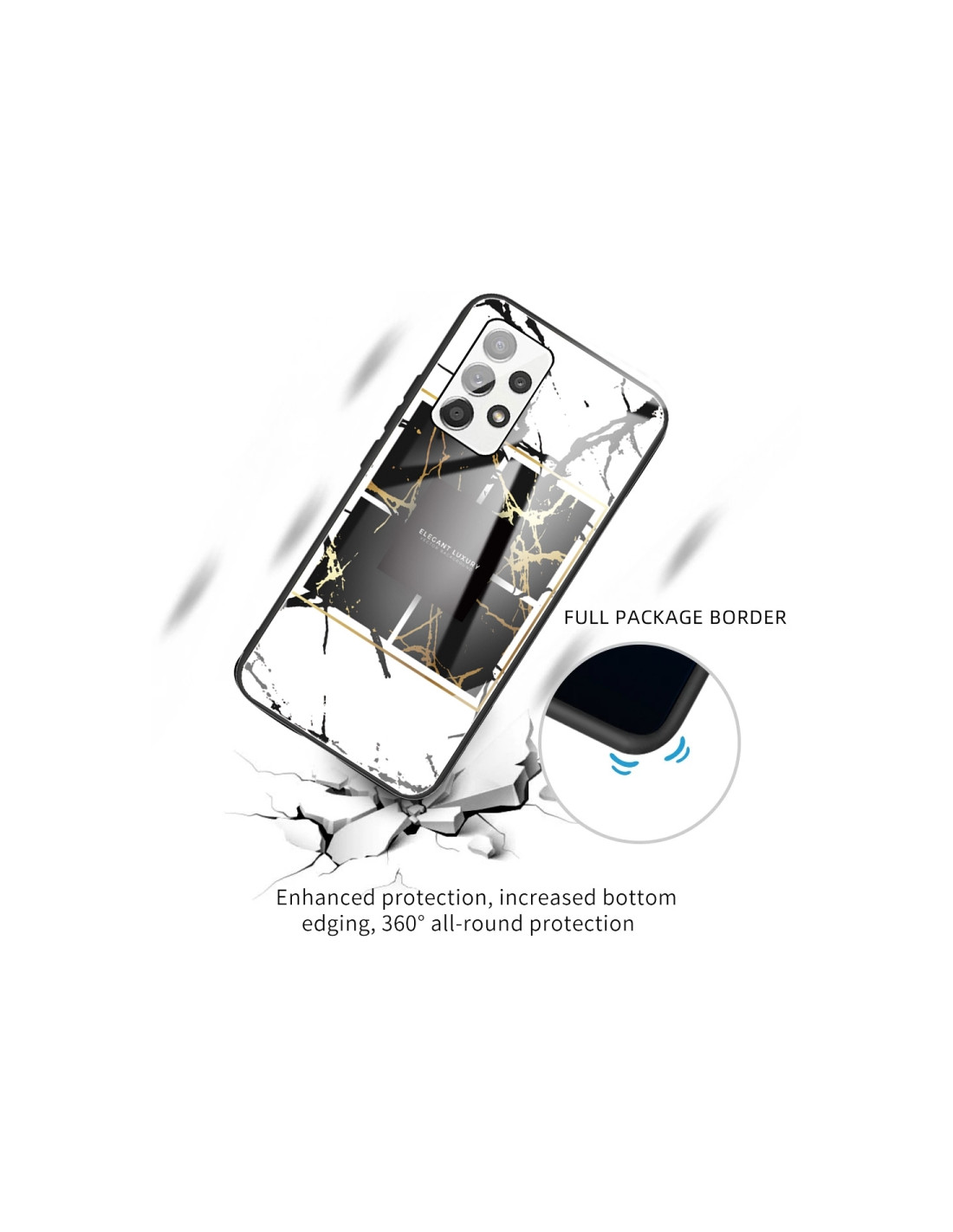 La cover Galaxy A52 5G combina eleganza e protezione grazie alla combinazione di vetro temperato e bordi in TPU. Il design marmo astratto viola dona un look sofisticato e moderno al tuo smartphone.