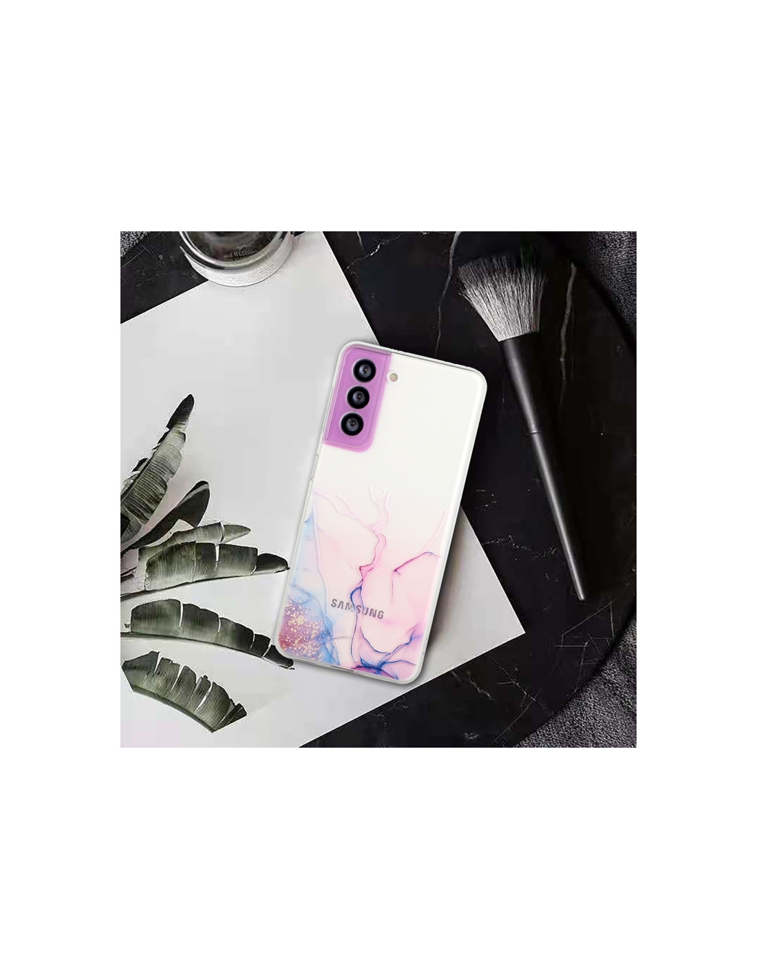 Cover Galaxy S22+ 5G in TPU con design marmo cavo. Protezione precisa e stile elegante in rosa.