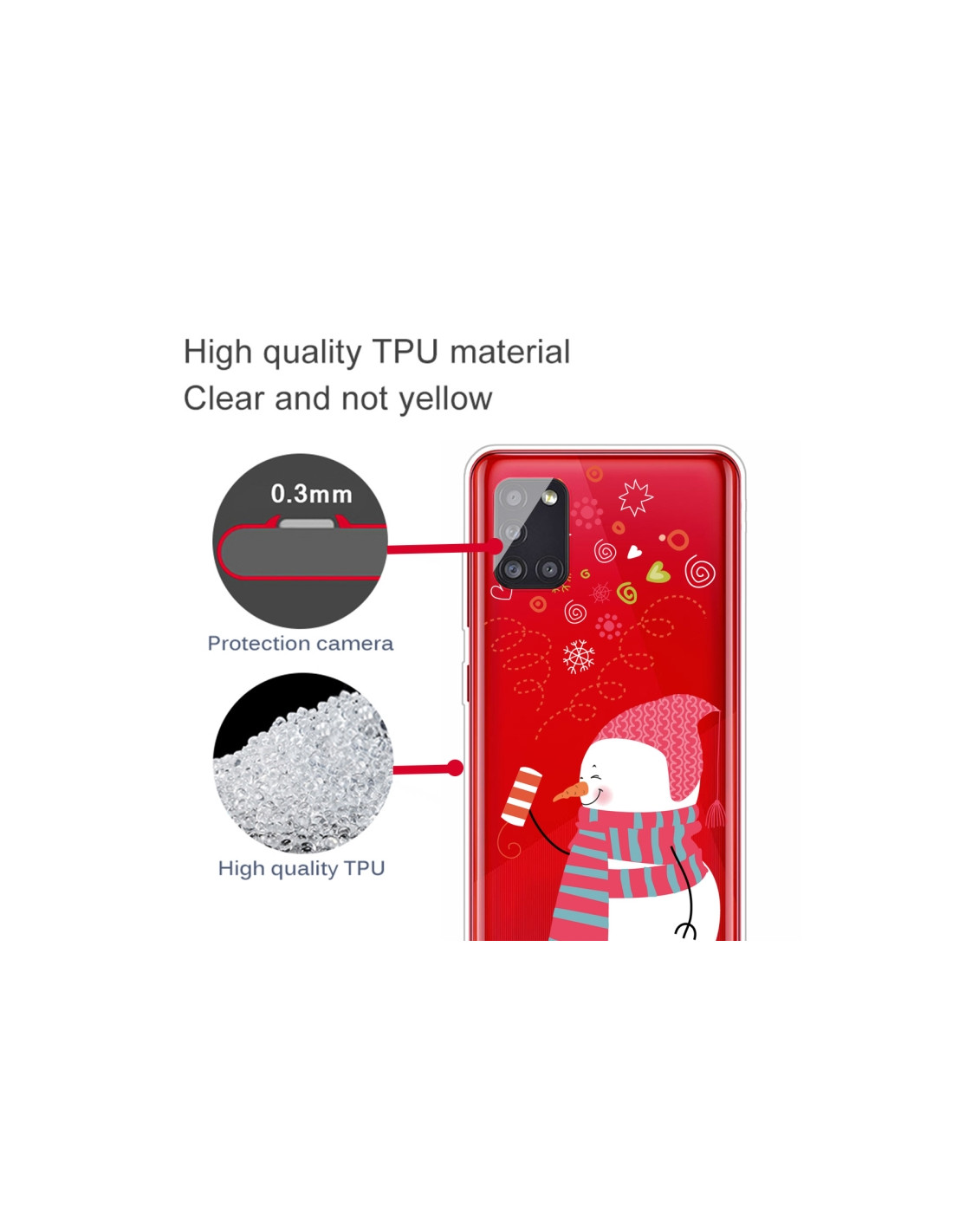 La cover Galaxy A51 5G in TPU trasparente rappresenta la scelta perfetta per chi vuole proteggere il proprio dispositivo mantenendo visibile il design originale del telefono. Con il fantasioso design Fireworks and Snowmen, questa custodia combina stile e funzionalità.