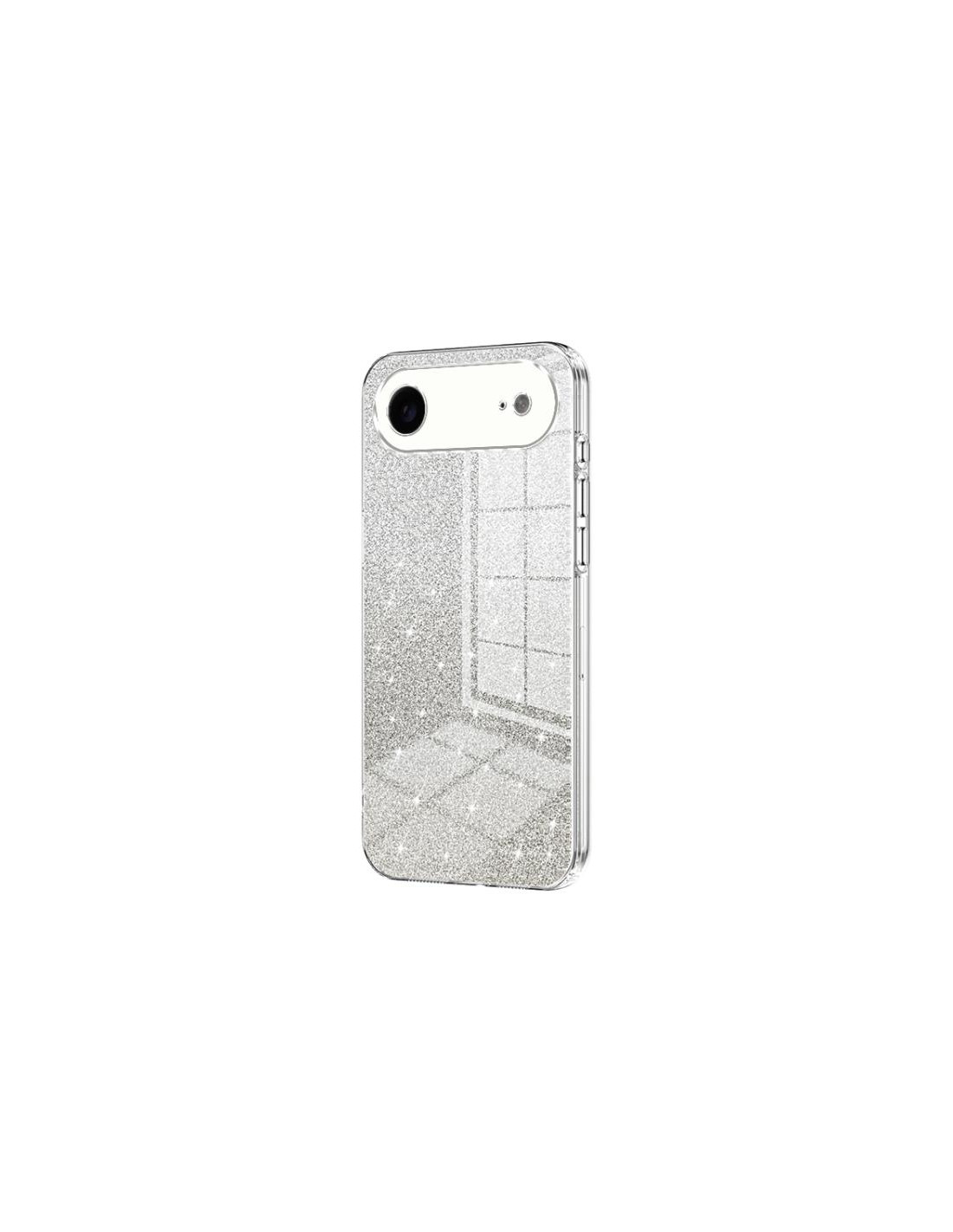 Cover trasparente per iPhone Air con design cuore glitterato e stelle. Protegge mantenendo visibile il telefono originale.