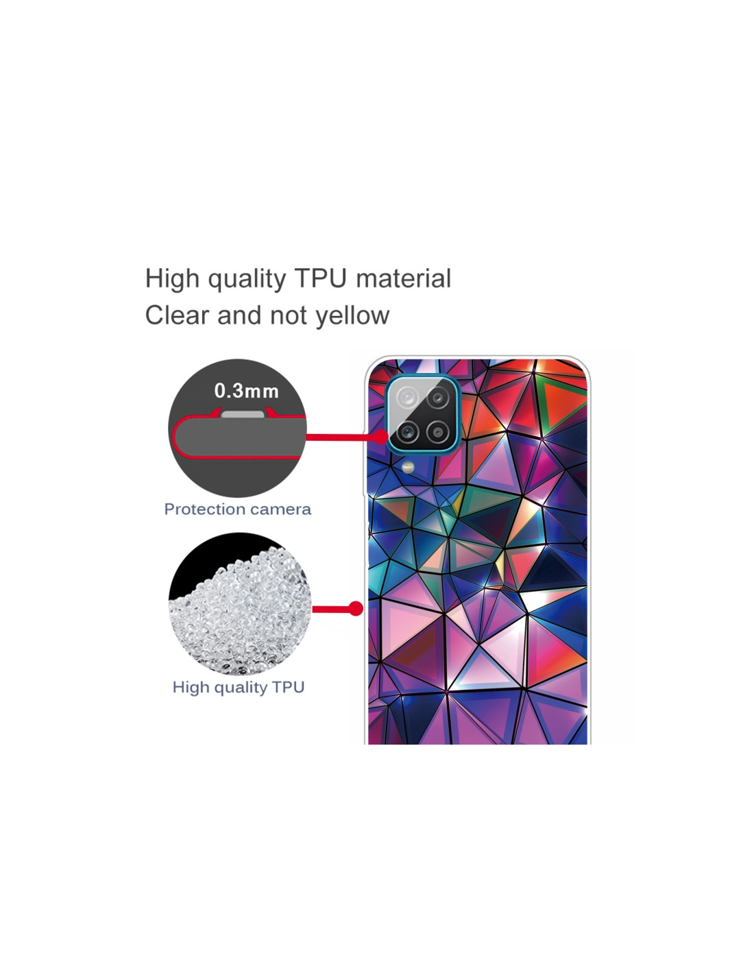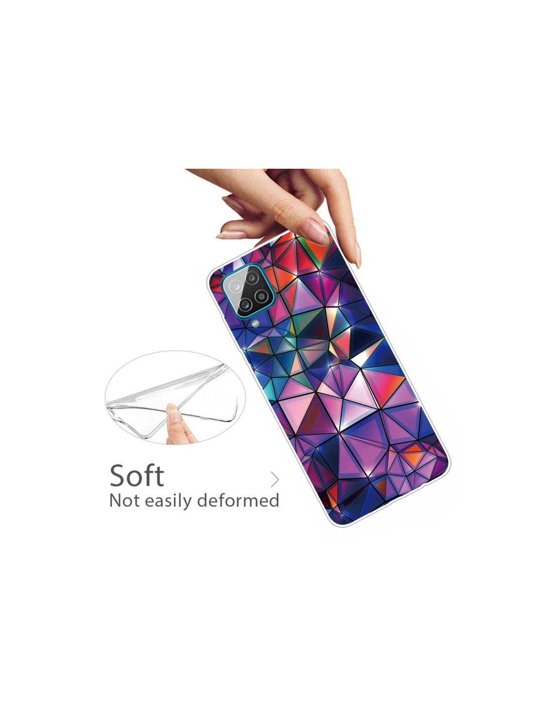 La cover Galaxy A12 in TPU trasparente unisce protezione e stile con il suo esclusivo design Blocchi Costruttivi Colorati. Realizzata in materiale antiurto di qualità, garantisce una difesa completa contro cadute e urti accidentali, mantenendo visibile il bellissimo design originale del tuo smartphone.