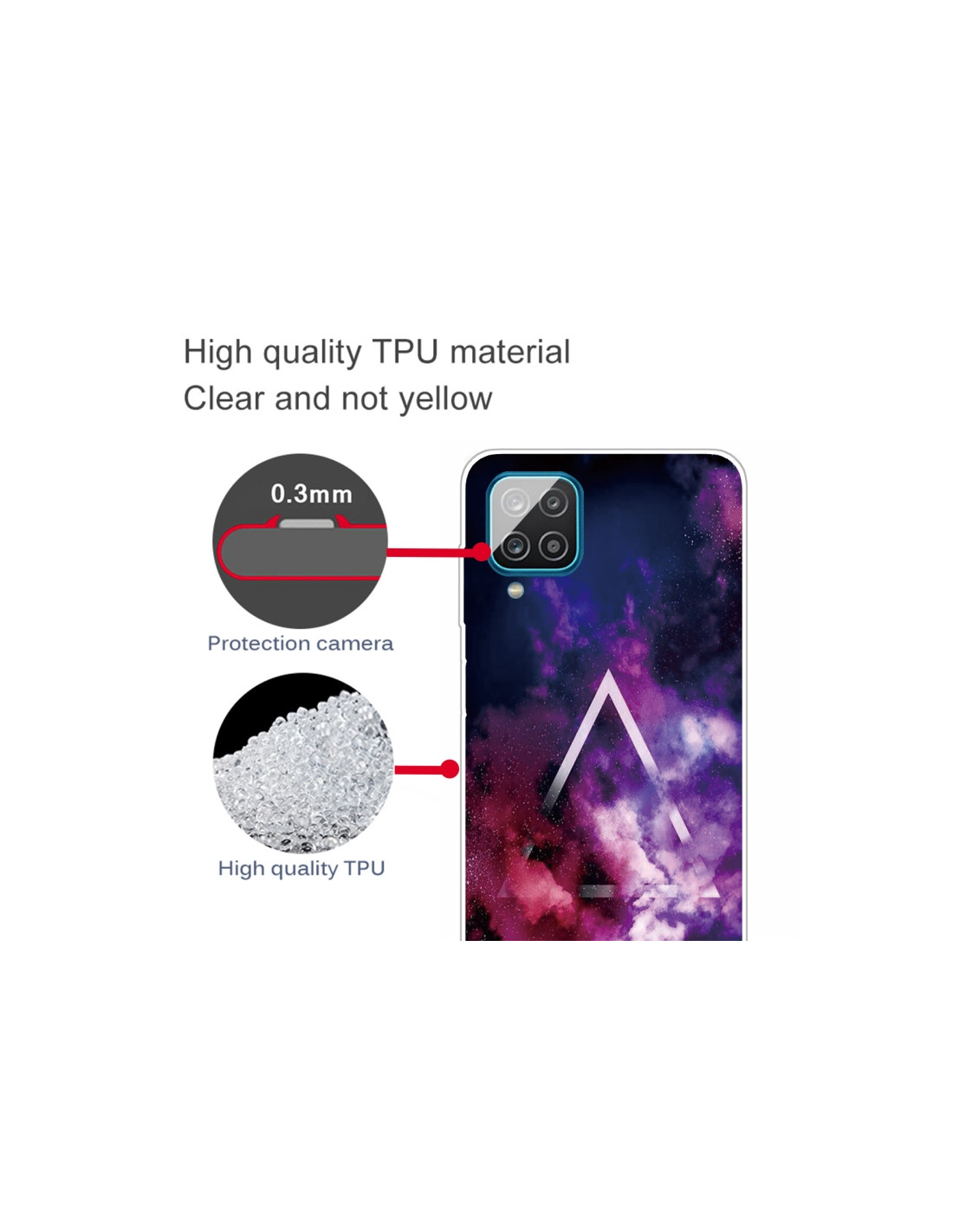 Proteggi il tuo Samsung Galaxy A12 con stile grazie a questa cover trasparente in TPU antiurto. Il design Cielo Stellato Triangoli combina estetica moderna e funzionalità, permettendoti di ammirare il colore originale del telefono mentre lo proteggi da cadute e impatti.