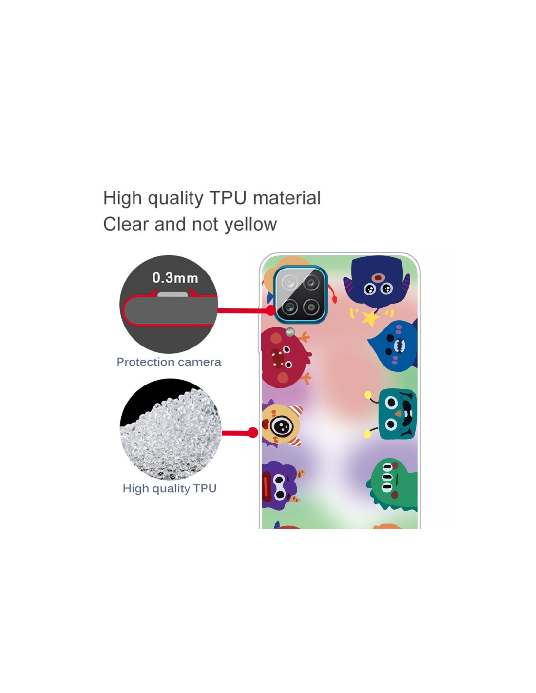 La cover Galaxy A12 in TPU trasparente con design mostro fluorescente offre una protezione robusta mantenendo visibile il design originale del tuo smartphone. Realizzata in materiale TPU resistente agli urti, garantisce una difesa efficace da cadute e impatti accidentali.