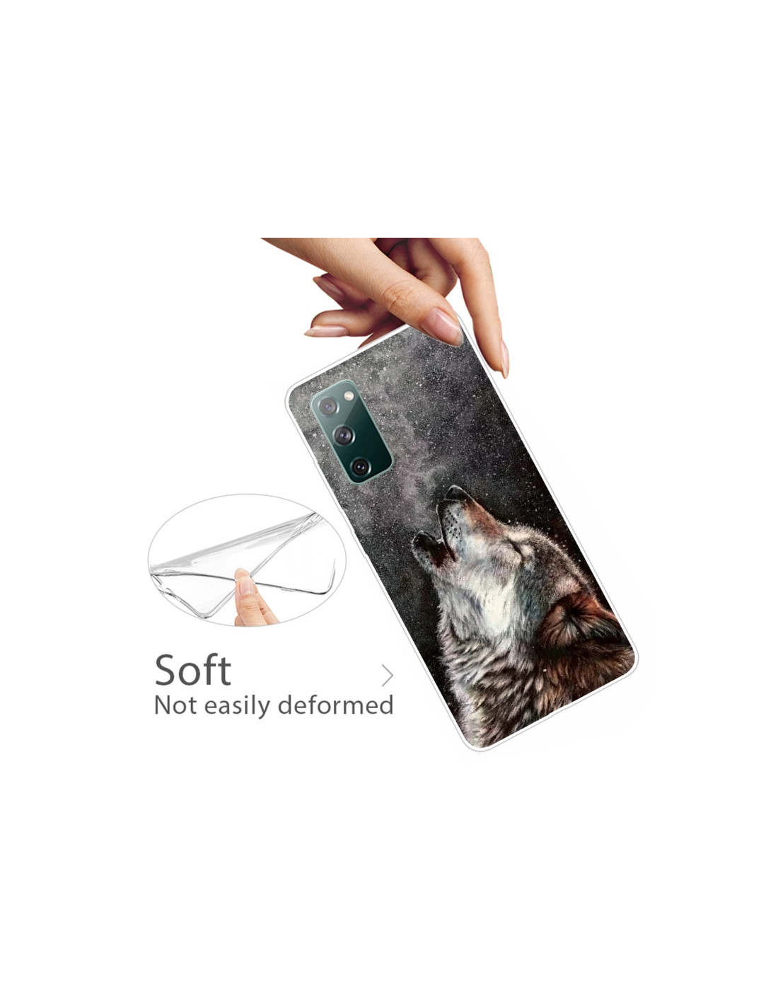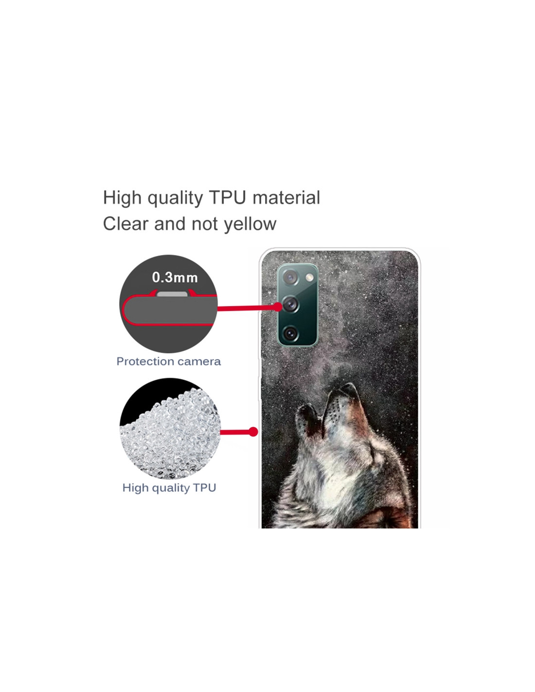 Cover trasparente TPU antiurto per Galaxy S20 FE con design Lupo in Chiamata. Protezione e stile.