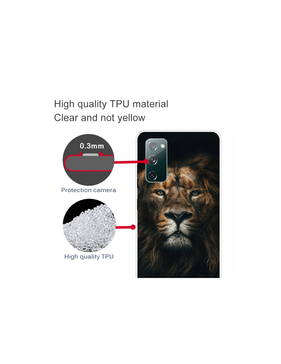 Proteggi il tuo Samsung Galaxy S20 FE con questa elegante cover trasparente in TPU che combina protezione e stile. Il design Leone Giallo aggiunge un tocco di personalità al tuo dispositivo, mantenendo la visibilità del telefono originale grazie alla trasparenza del materiale.