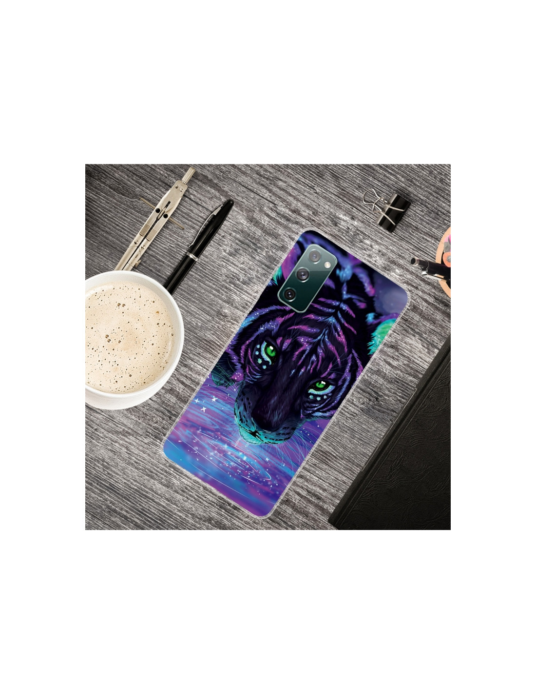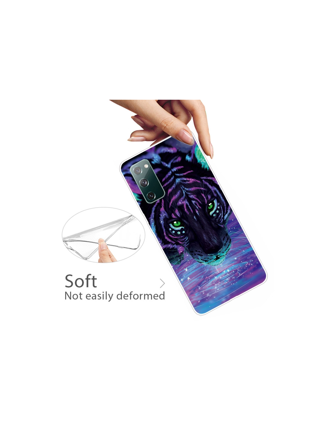 La cover Galaxy S20 FE in TPU trasparente coniuga protezione e stile con un affascinante design a Tigre Viola dipinta. Realizzata in materiale TPU resistente, offre una difesa completa contro urti e cadute mantenendo la bellezza originale del tuo smartphone visibile.