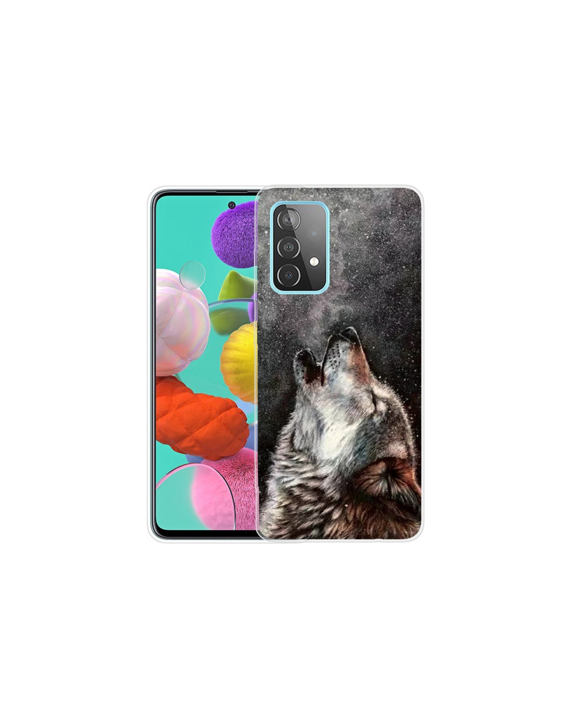 Cover Galaxy A32 5G in TPU trasparente antiurto con design Lupo che Chiama. Protezione robusta e design visibile.