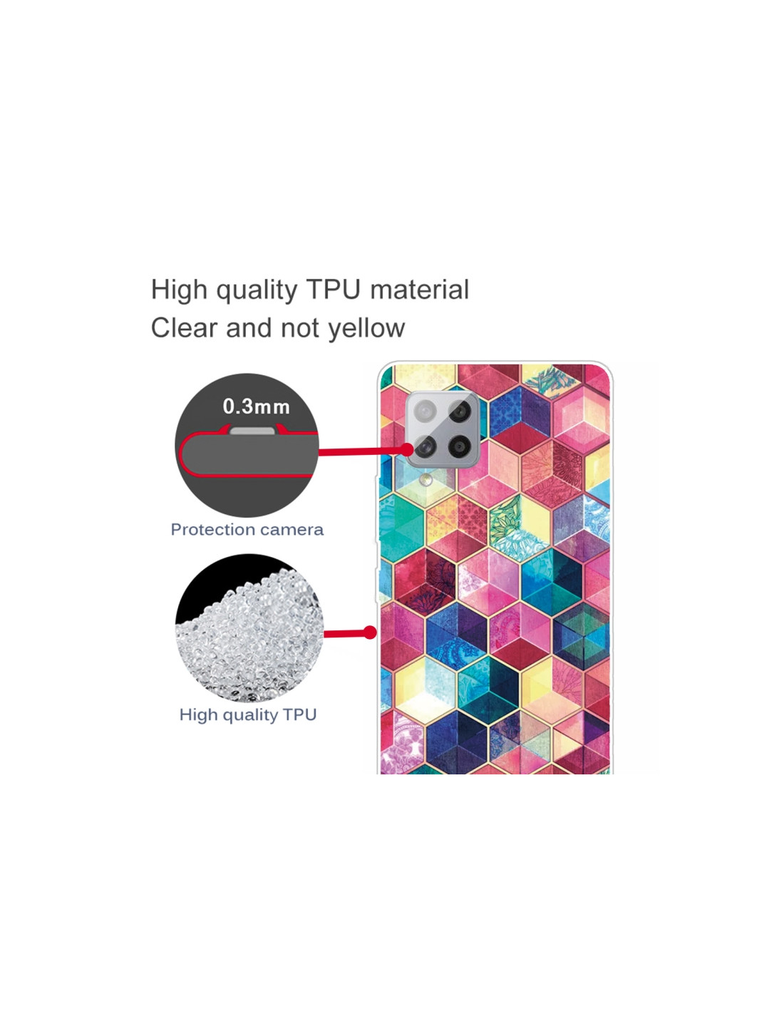 La cover Galaxy A42 5G in TPU trasparente offre una protezione robusta mantenendo visibile il design originale del tuo smartphone. Realizzata in materiale TPU antiurto di qualità, questa custodia è stata appositamente progettata per assorbire gli impatti e proteggere il tuo dispositivo da cadute e urti accidentali. Caratteristiche principali: