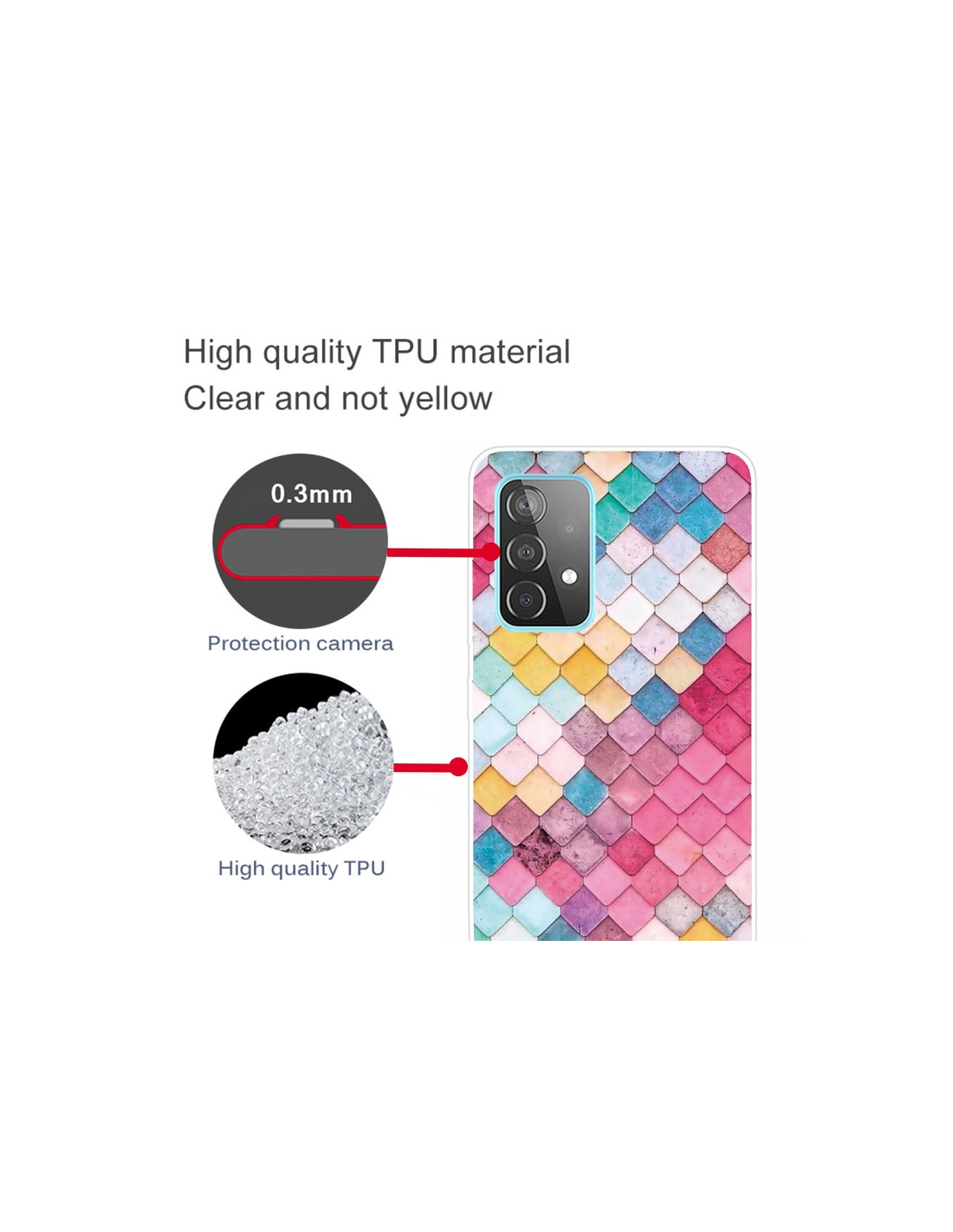 Cover trasparente in TPU per Galaxy A72 con protezione antiurto. Design Quartetto di Colori elegante e resistente.