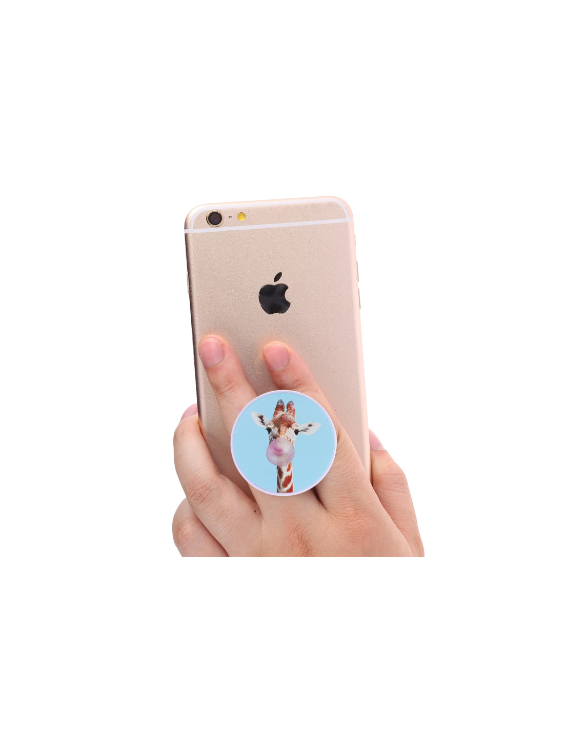 Supporto espandibile universale con fantasia giraffa. Compatibile con tutti gli smartphone, pratico e versatile.
