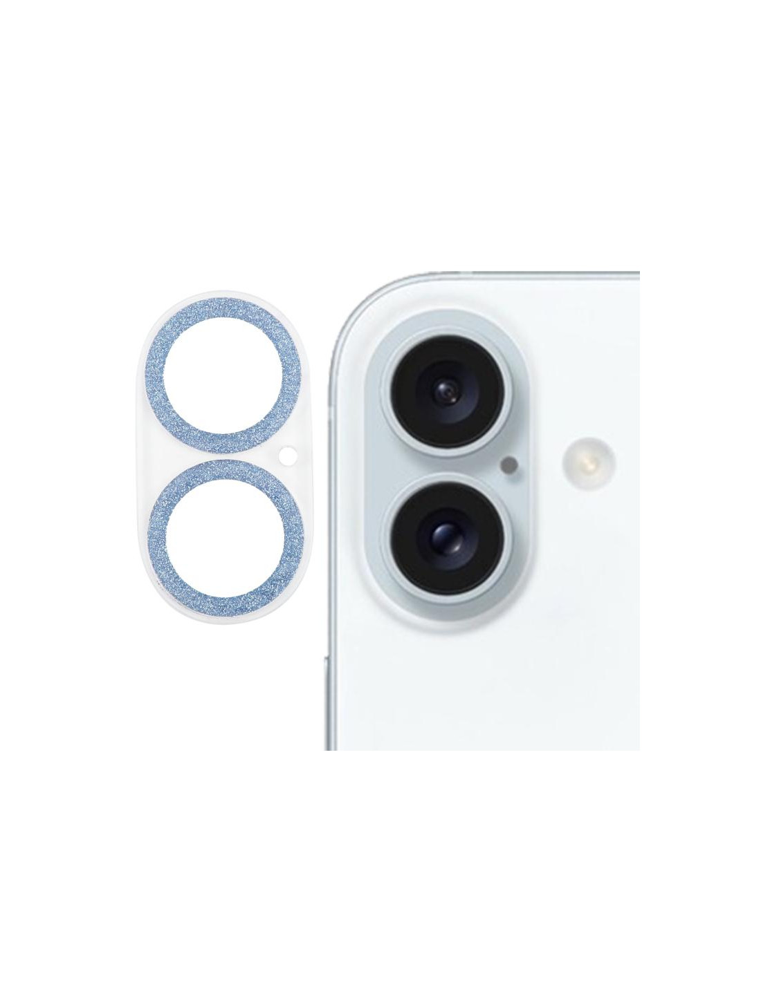 Pellicola vetro temperato per fotocamera iPhone 17 con design glitterato argento e anello protettivo.