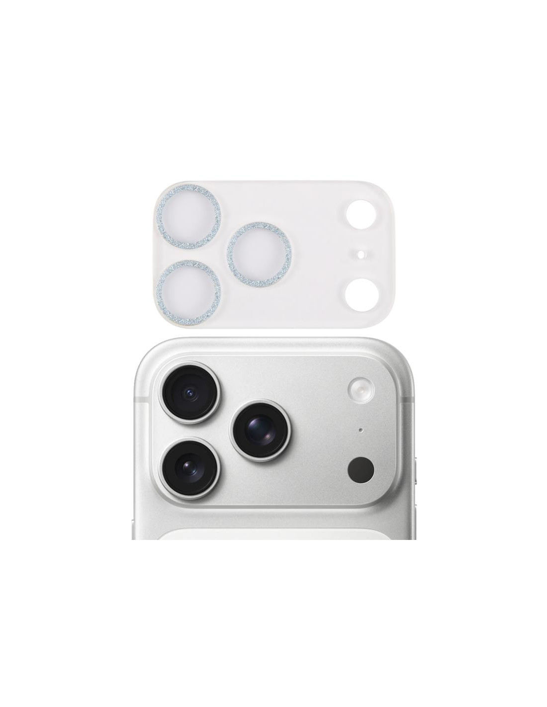 Proteggi l'obiettivo della fotocamera del tuo iPhone 17 Pro con questa esclusiva pellicola in vetro temperato. Il design glitterato argento dona un tocco di eleganza e brillantezza al retro del dispositivo, mantenendo intatta la qualità degli scatti.