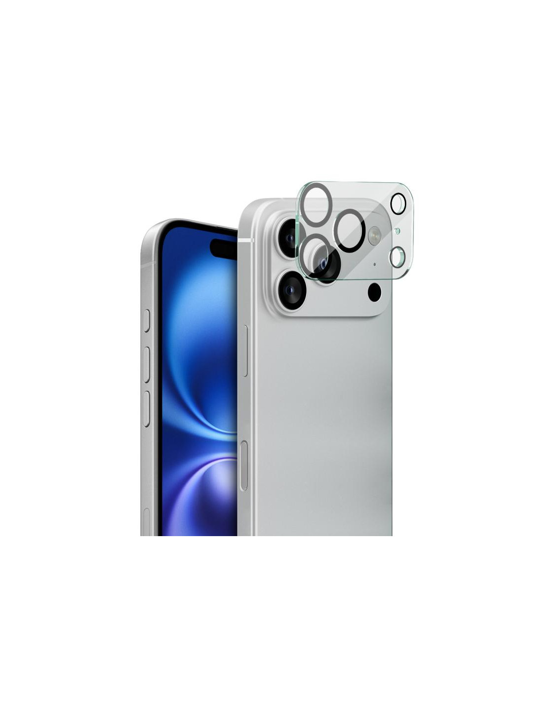 Protettore in vetro temperato per le lenti della fotocamera dell'iPhone 17 Pro. Design elegante con anello diamantato in argento.