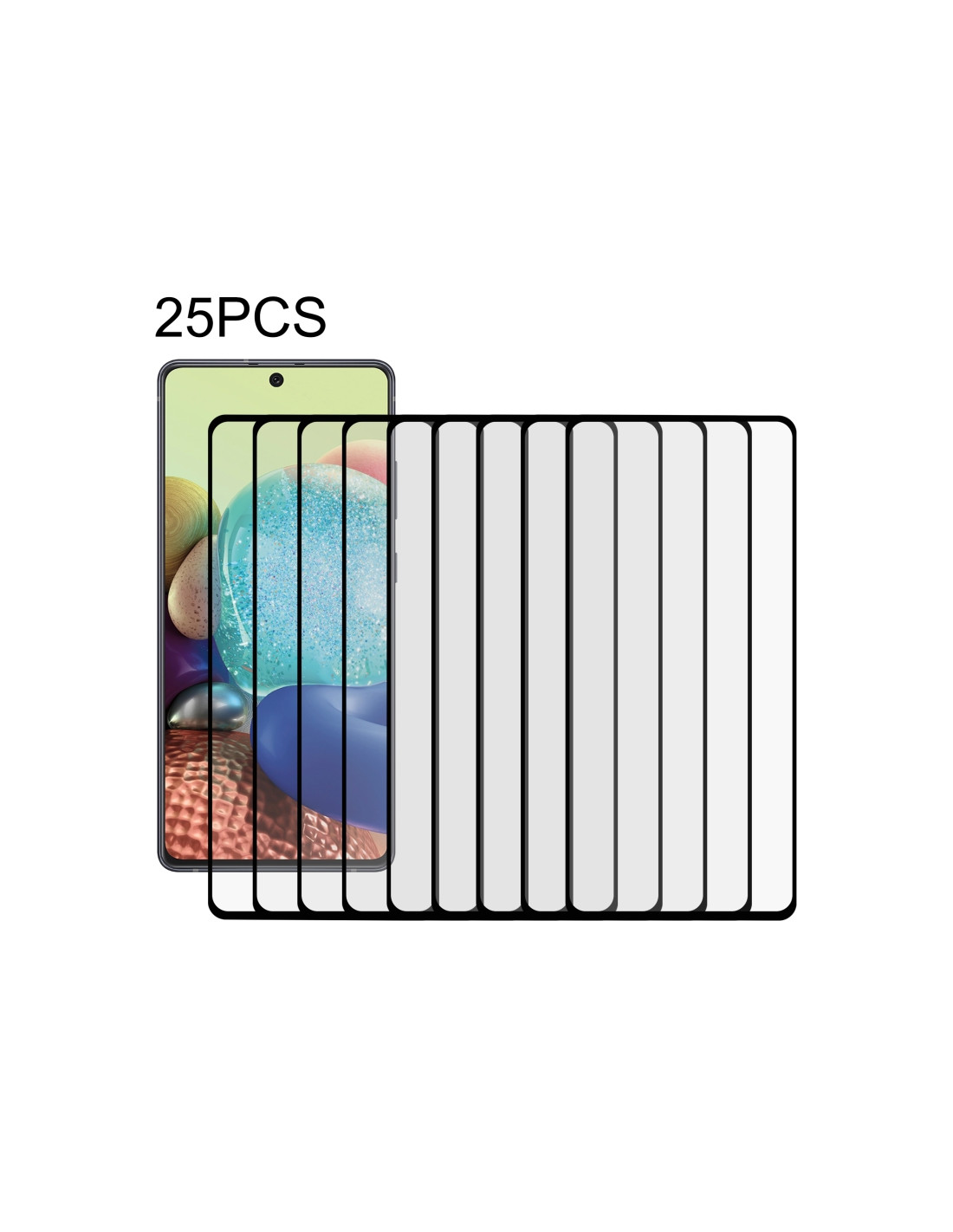 Proteggi lo schermo del tuo Samsung Galaxy A71 5G UW con questo vetro temperato ad altissime prestazioni. Il pacco contiene 25 pellicole di protezione con adesivo full glue che garantisce una copertura totale del display.