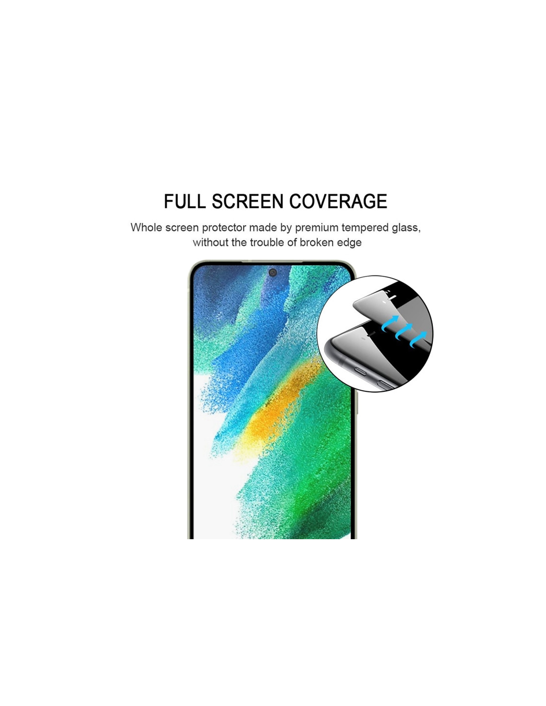 Confezione da 25 pezzi di vetro temperato full glue per Galaxy S21 FE 5G. Protezione completa dello schermo.