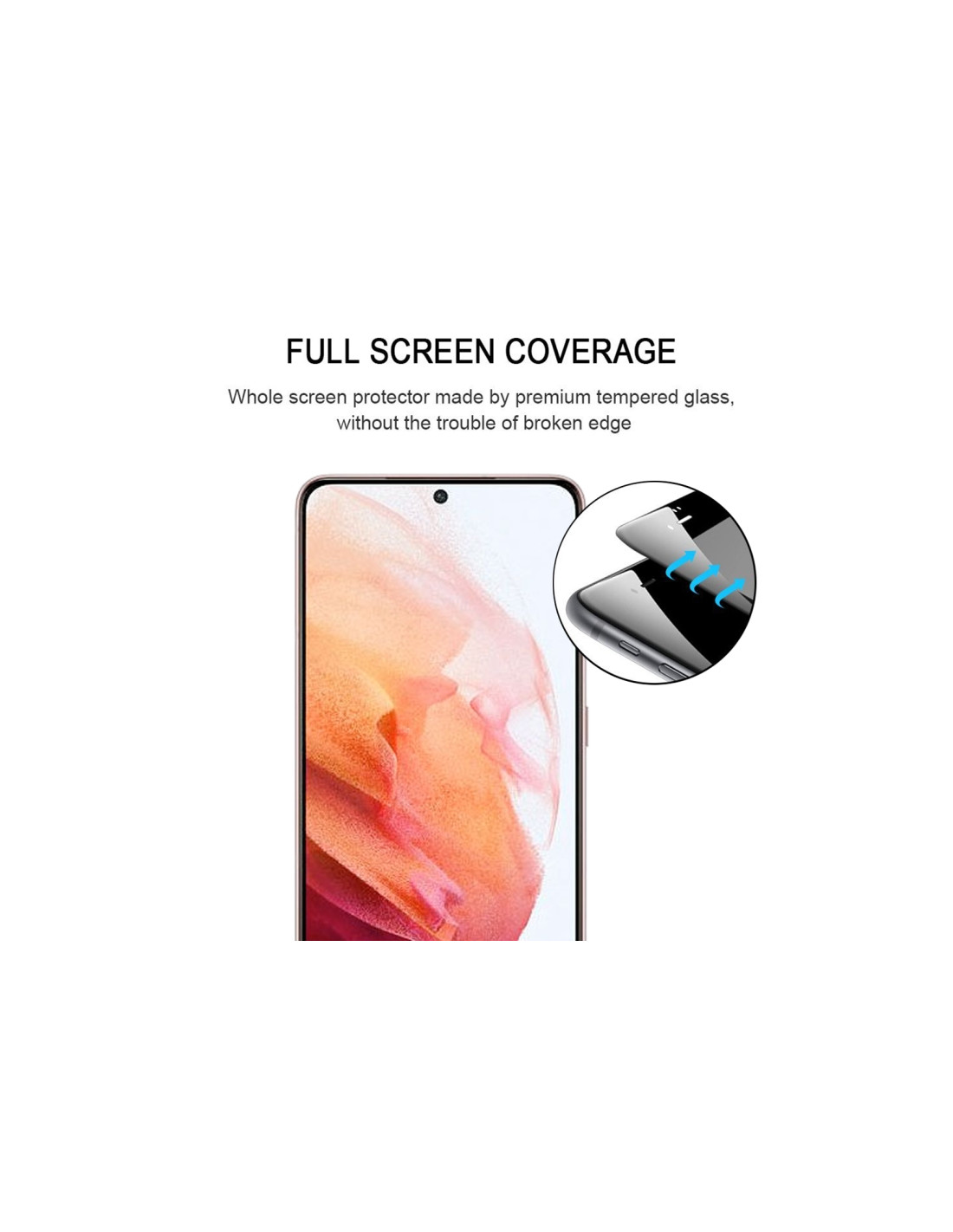 Protezione totale dello schermo per Galaxy S21 5G con vetro temperato 9H e copertura bordi curvi.